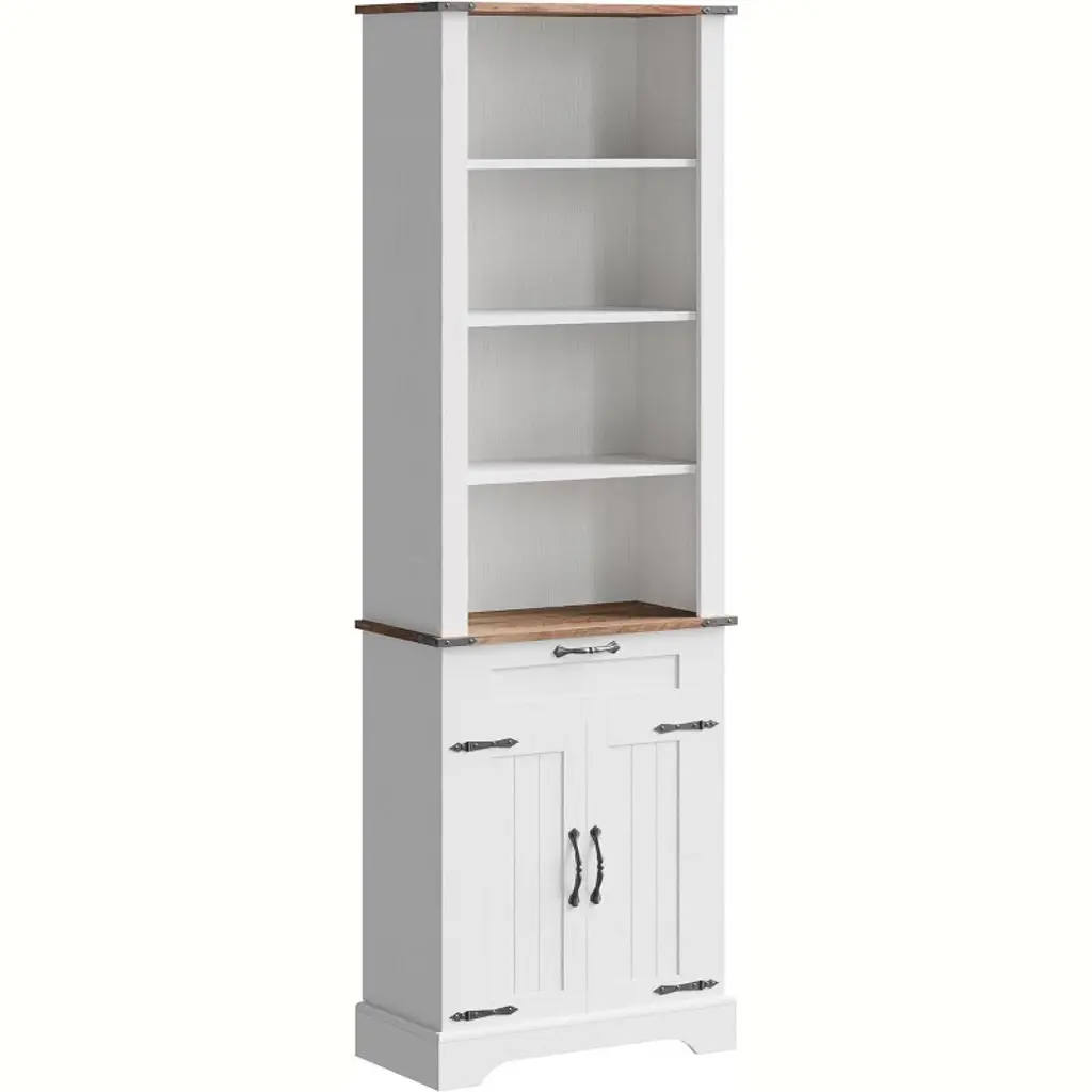 Farmhouse Sideboard Buffet with Microwave Stand, Barn Doors Buffet Storage Cabinet with Drawers and Shelves, Wood Coffee Bar Cabinet for Kitchen, Dining Room, Living Room