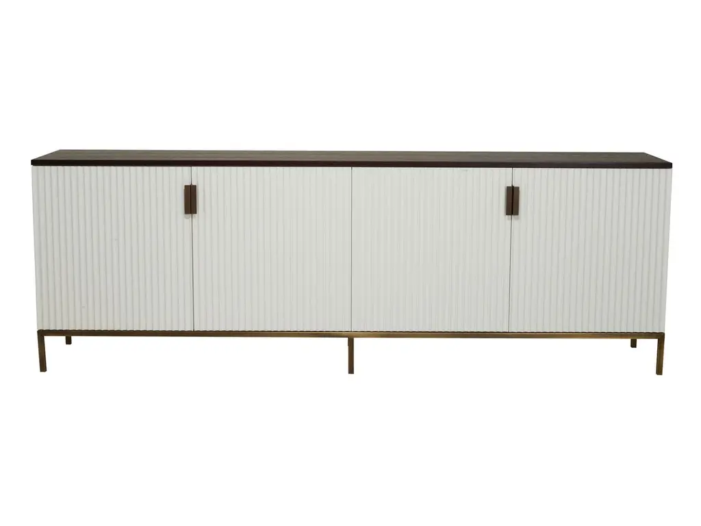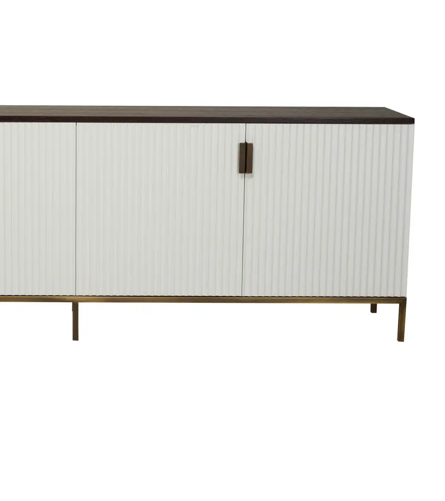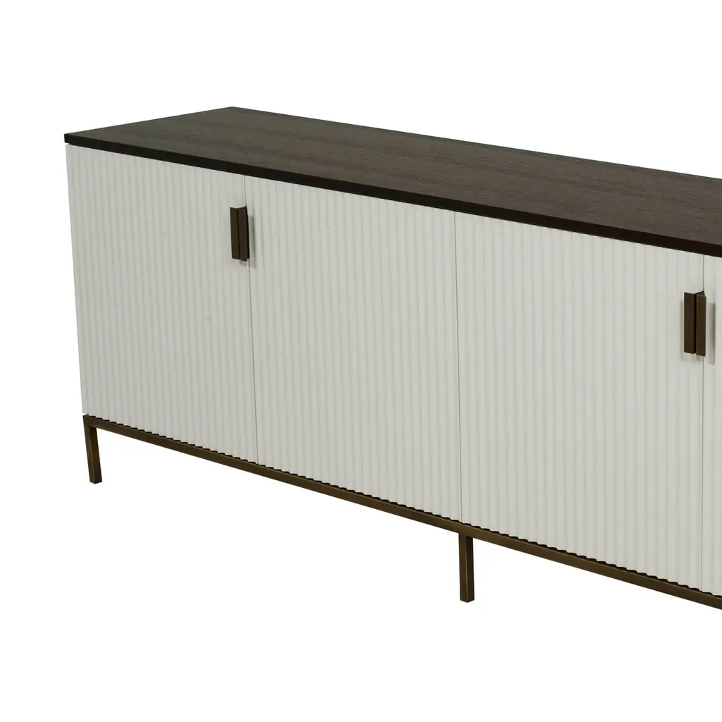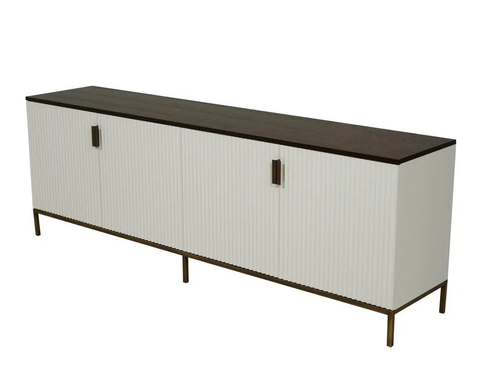 Sideboard by Gürkan DoganDimensions: W 60 x D 180 x H 50 cmMaterials: Smoked Oak, Antique Brass, White Lacquer, Mirror.