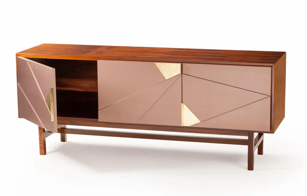 Sideboard Jazz In Oak Wood, Brass And Lacquer