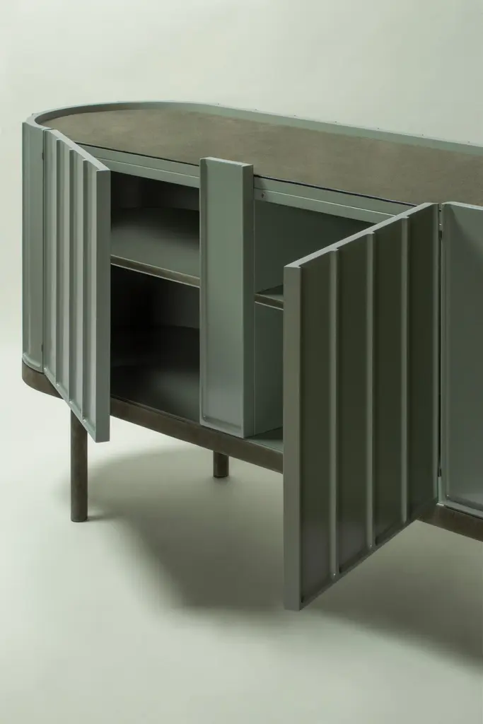 Novare Sideboard -- Francesco Balzano x GiobagnaraAvailable in printed calfskin, suede, or nappa finish. Wood laquered finishing has to be indicated.For simple and sophisticated leather and marble products, look no further than the Francesco Balzano line. Born and raised in Paris, Francesco Balzano studied interior design and architecture before opening his own studio to design custom and limited editions of furniture pieces for galleries around the world. The influence of Venice, Rome, and Capri are omnipresent in many of Balzano’s products, which fashion simple elegance out of a carefully selected range of leather and marble colors and finishes. The monolithic seats, benches, and tables that comprise Balzano’s ossicle collection strike the perfect balance between organic and pure geometric shapes, thus offering contemporary luxury elevated by minimalism. The singularity of each design conceived as a sculptural piece is bound to stand the test of time. For nearly twenty years, the Giobagnara brand has combined traditional know-how and leading-edge technology to produce elegance of the highest standard. With luxurious creations available in a unique and virtually limitless color palette of leathers and suede, Giobagnara now boasts one of the most comprehensive offers of leather home accessories on the market.