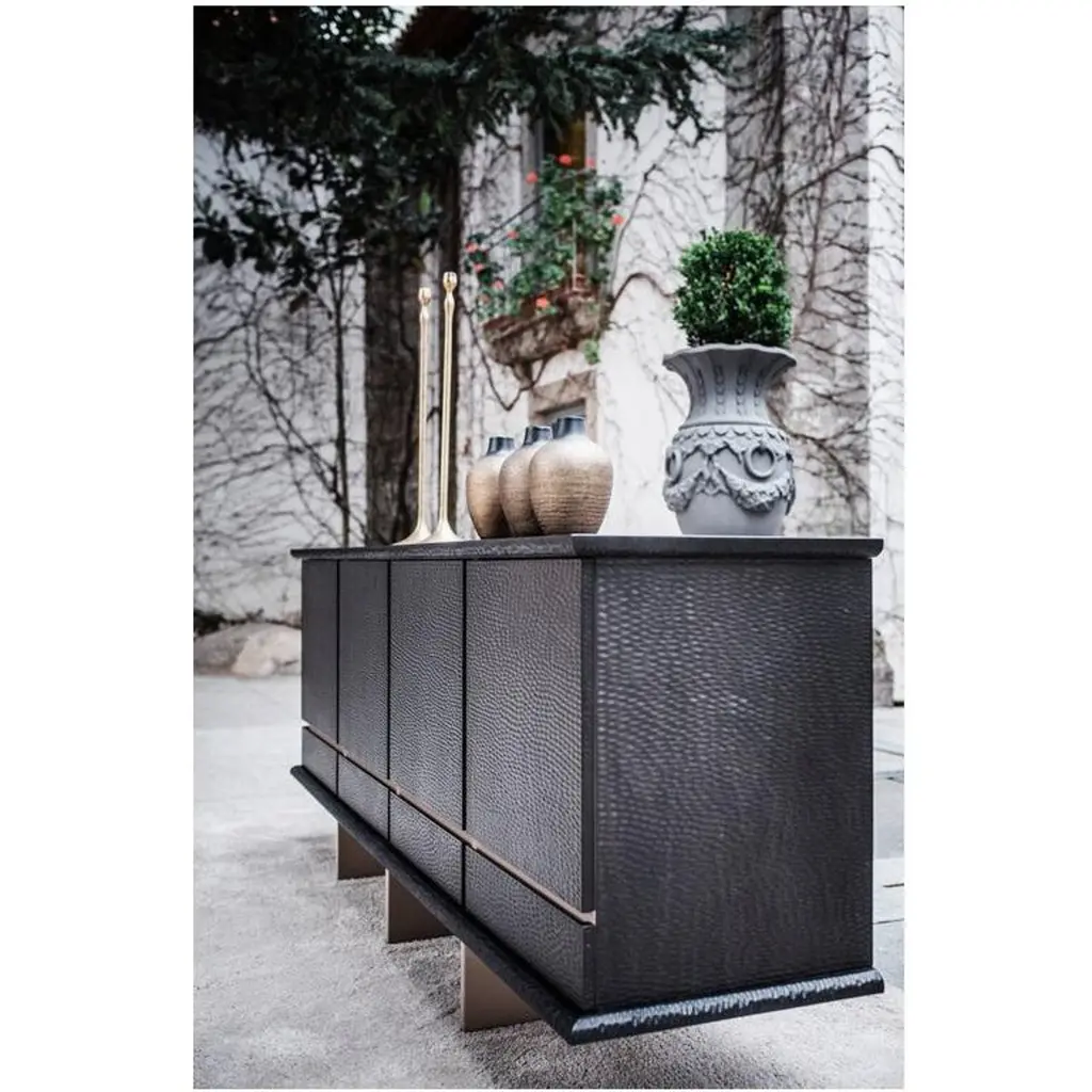 Sideboard Made Of Hand-Carved Wood With Lacquered Iron Feet