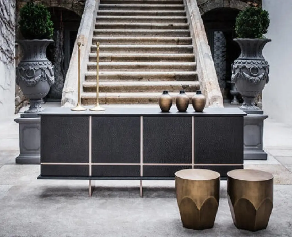 Made of hand carved wood with lacquered iron feet, this is an elegant sideboard that is perfect for accommodating all of your things and bring a touch of class into your house at the same time!This storage accessory fits into any dining room, no matter the design, and is an option as functional as it is stylish.Custom sizes available upon request.We do our best to expedite production and to ship and deliver product within the listed lead time, however current lead times might be longer due to global shipping backlog and delays. These delays are out of our control and cannot be a reason to cancel an order.