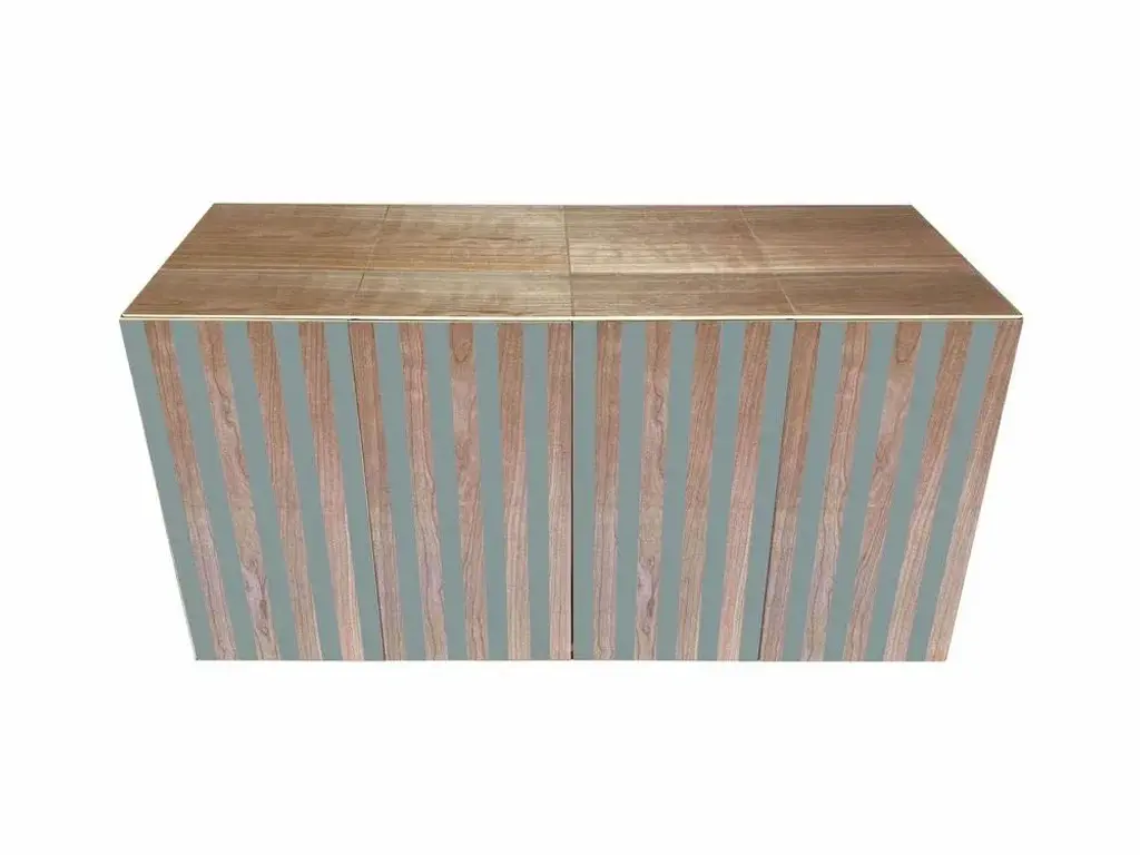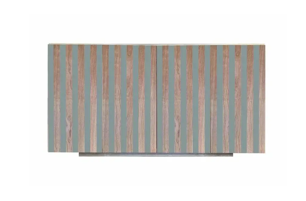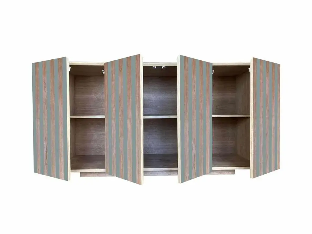 "MD3" belief by Meccani Studio for Meccani Design, 2023. Cherry belief with 4 doors and 3 internal shelves. The doors are in cherry and light green lacquered. Limited edition of 10 numbered pieces with signature, date and label of the company. Dimensions 145 x 55 x h 80 cm. Labeled by Maker,Numbered