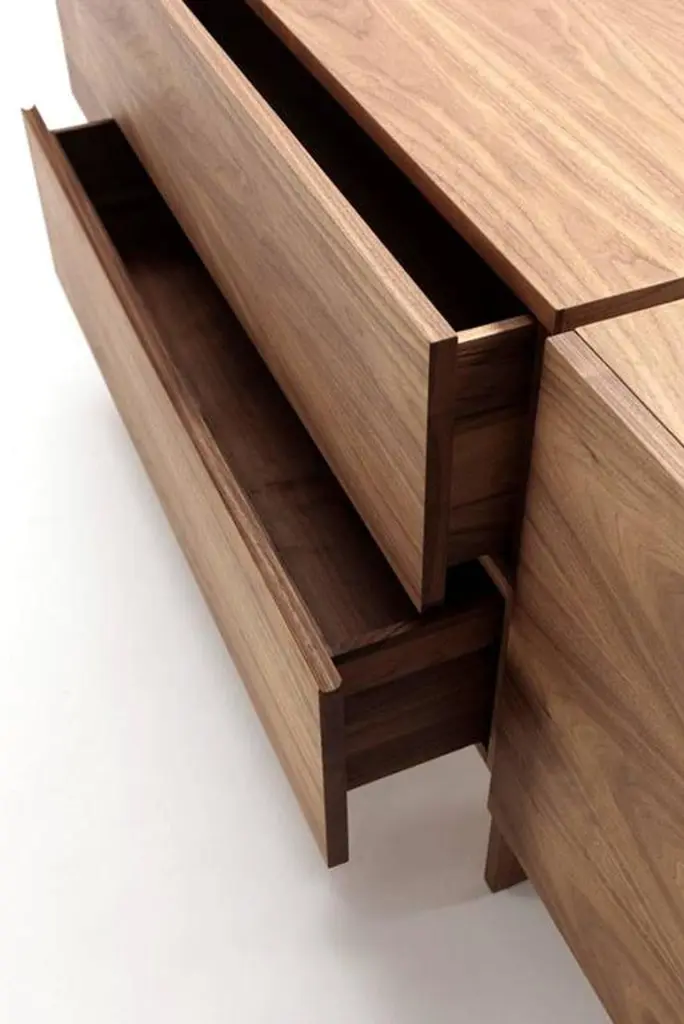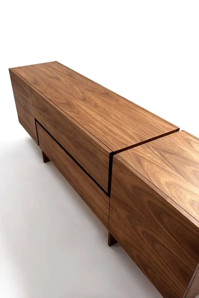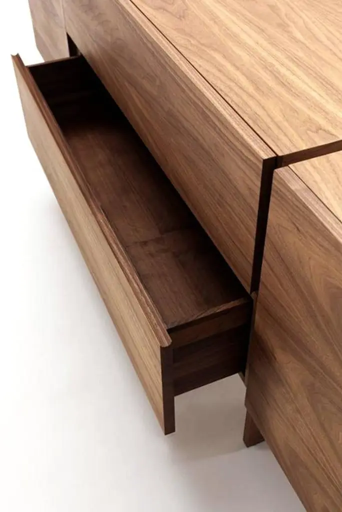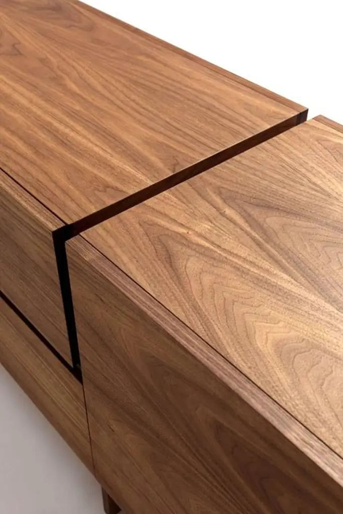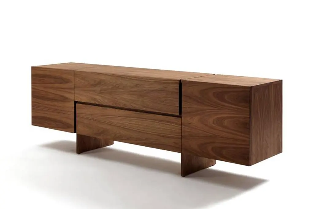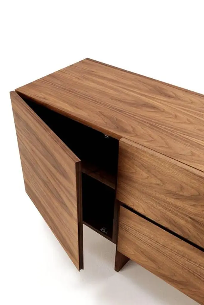 Sideboard multilayer in solid walnut with two centraldrawers on metal rails and two side doors, including2 shelves.Also available in solid oak, on request.