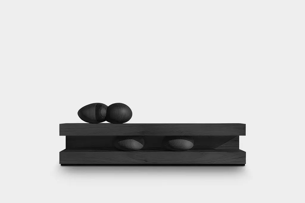 Sideboard Sereno No56, Wooden Contemporary Furniture by NONOSereno CollectionDesign by Joel Escalona for NONOWhen practicality becomes art, the result is the Sereno Collection by Joel Escalona for NONO. This collection redefines tranquility through exquisite credenzas and sideboards that stand alone in their beauty, embodying a serene simplicity that everyone can feel.The Sereno Collection celebrates minimalism with pieces that don’t need additional decoration to make a statement. Each credenza and sideboard is adorned with unique wooden sculptures, reminiscent of a tranquil pebble, thoughtfully placed to enhance its elegance. These pieces are crafted from solid wood, adding character to each design. Standard models use red oak, but customization with various woods and finishes like walnut, teak, and burnt oak is available to perfectly suit your style and space.Founded in 2011 by Joel Escalona, NONO has over a decade of experience producing high-quality interior furnishings. Joel’s work transcends categorization, blending creativity, productivity, and introspection. His multifaceted approach, encompassing drawing and sculpture, infuses his designs with lyricism, humor, and poetry.NONO's philosophy centers on transforming everyday beauty into extraordinary art forms, seamlessly blending functionality and aesthetics. Each Sereno credenza and sideboard exemplifies this philosophy, offering both beauty and practicality. When you choose a piece from the Sereno Collection, you’re not just acquiring furniture; you’re bringing a piece of art into your home.Each piece in the Sereno Collection makes you feel serene and tranquil, embodying a minimalist elegance that doesn’t require additional ornamentation. The beauty of these designs is that they are complete in themselves. You don't need to add anything else to the compartments or surfaces; they stand alone, transforming any living room or interior project with their quiet sophistication.Experience the serene elegance of the Sereno Collection by Joel Escalona for NONO, where every piece speaks softly yet powerfully, transforming your space with its quiet beauty.———Some details to consider when placing an order with us:• Catalog images are digitally generated. Actual products may slightly vary in texture, grain, and final finish due to natural material differences. Despite these variations, our expertise ensures each piece maintains high quality and matches the intended design.• All of our products are made to order, and the lead time for standard products is estimated to be 9 to 12 weeks, plus shipping time. However, special pieces or sculptures may require a longer lead time.• We offer customization in dimensions and finish for all of our furniture pieces, which may result in additional charges.• We only facilitate freight services by a third party. The client is solely responsible for any associated import/export taxes, as well as any necessary customs paperwork.• We are not responsible for any damages that may occur during shipping or for any customs-related delays.