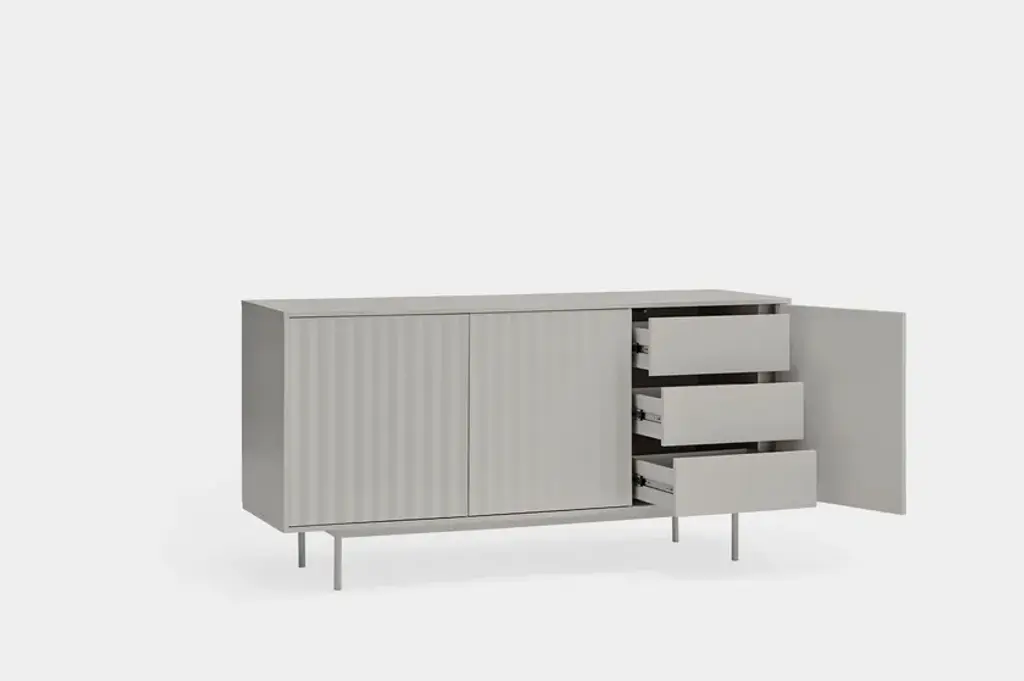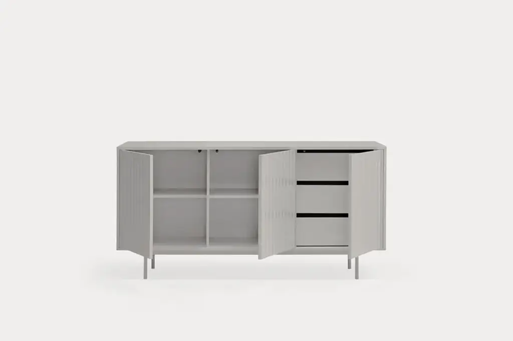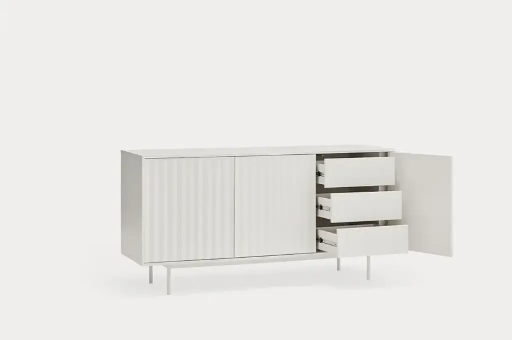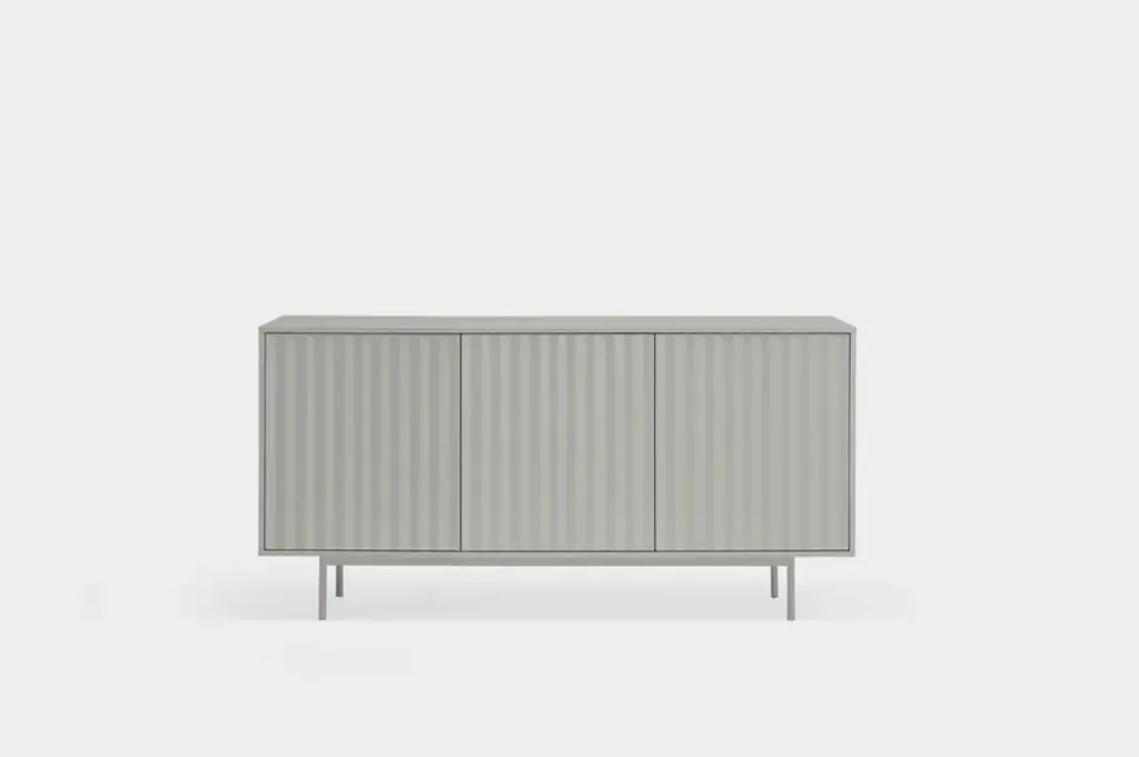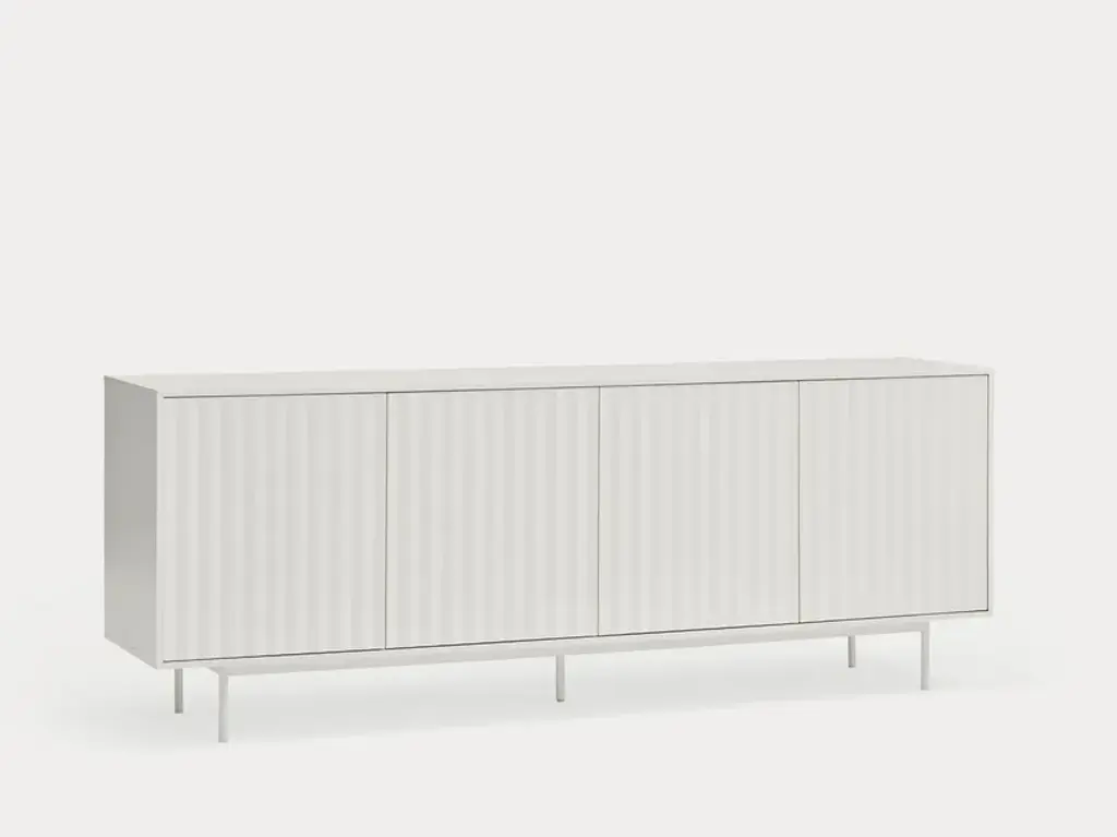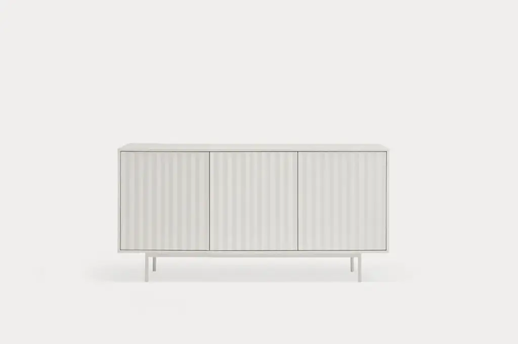 Sierra is a matt laquered MDF sideboard which counts three or four doors with the serrated detail. Inside three drawers and three shelves offer a generous storage space.Sierra collection is inspired by the mountainous depths. Infact the finish is inspired by the ups and downs of a serrated landscape that plays with lights, shadows and the perception of volume itself.