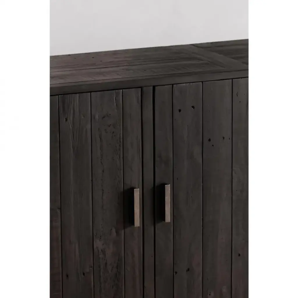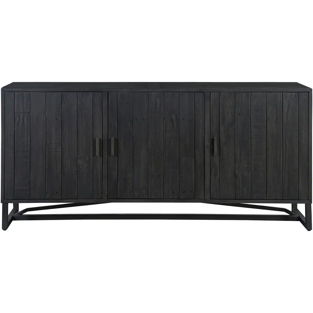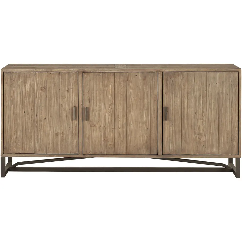 The Sierra Sideboard is a masterful fusion of timeless craftsmanship and rustic design. Its pine frame with reclaimed pine face boards is accented by a stainless-steel base and 3 locking doors with adjustable interior shelves. A sophisticated addition to a stylish dining room.