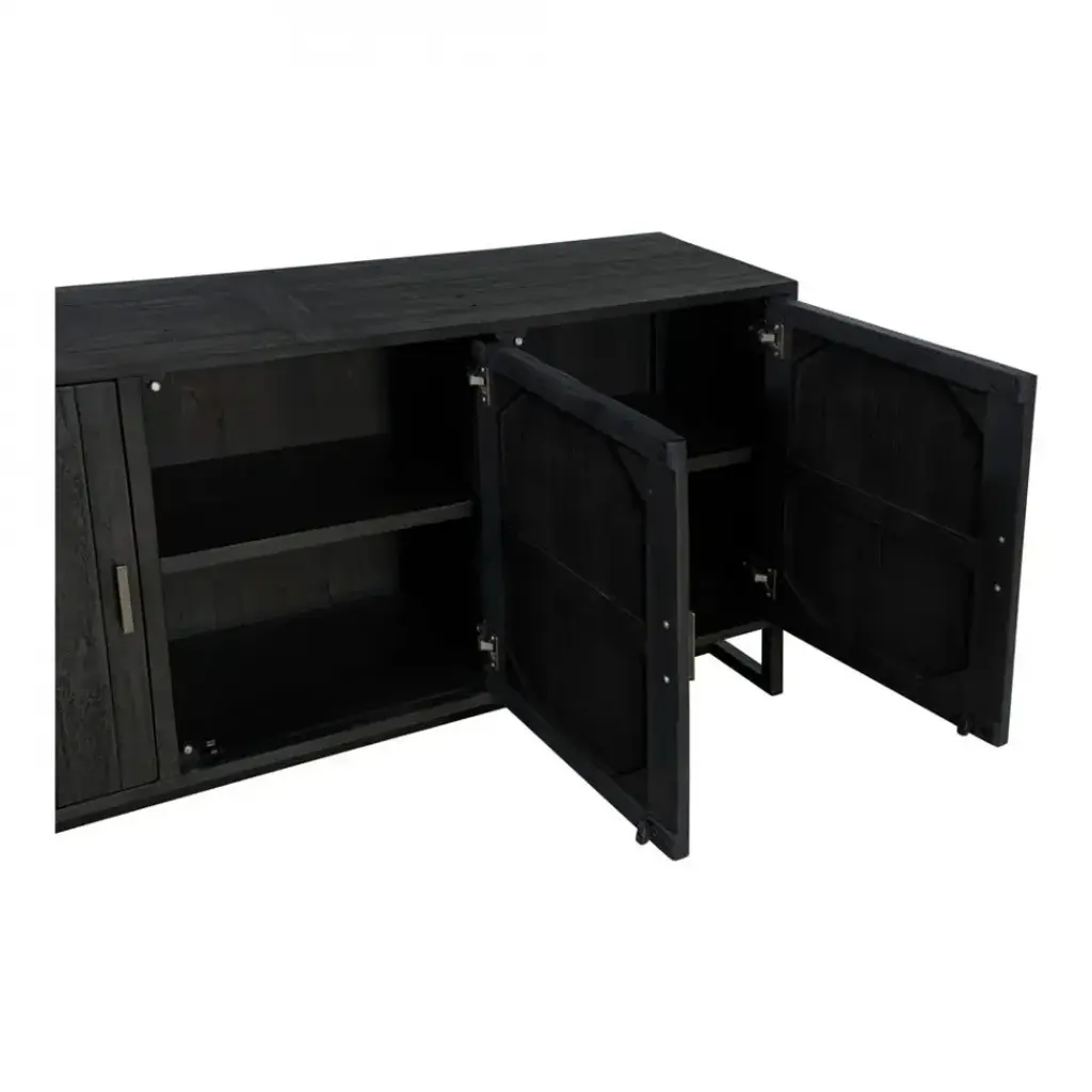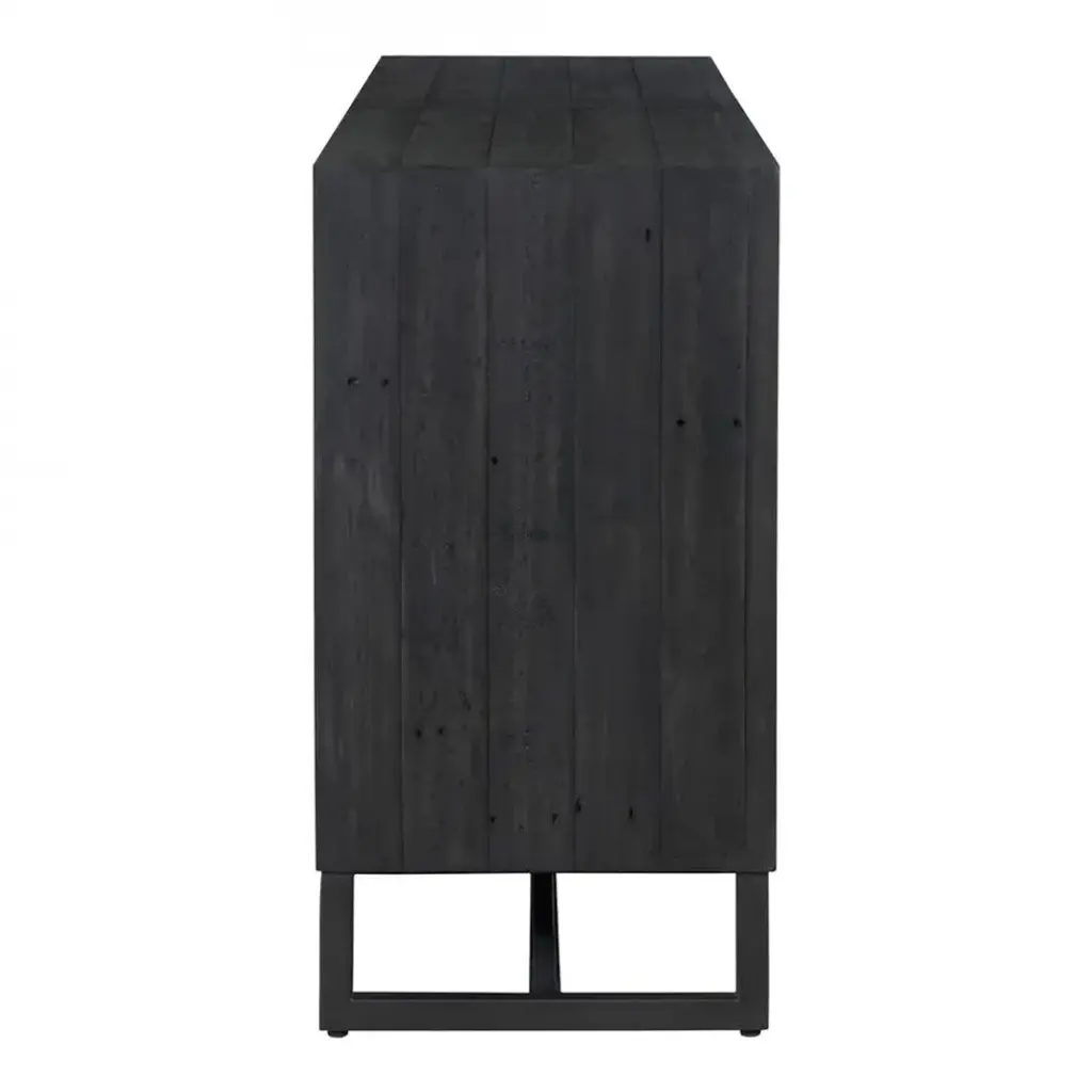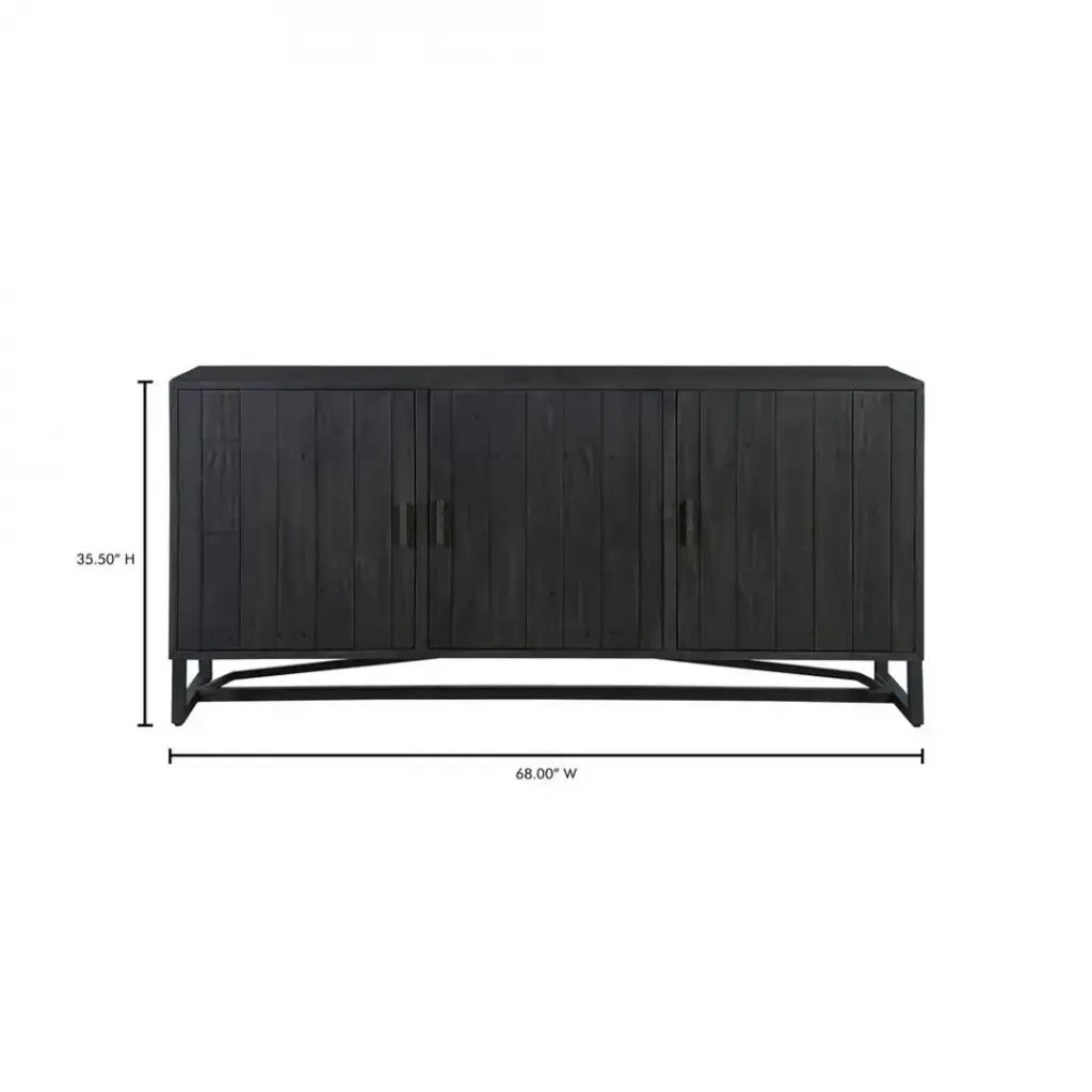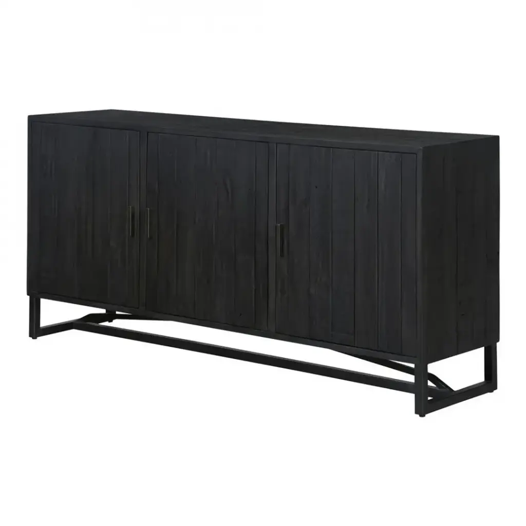The Sierra Sideboard is a masterful fusion of timeless craftsmanship and rustic design. Its pine frame with reclaimed pine face boards is accented by a stainless-steel base and 3 locking doors with adjustable interior shelves. A sophisticated addition to a stylish dining room.