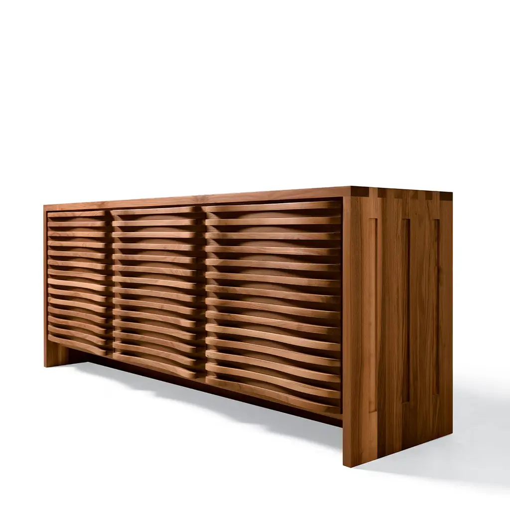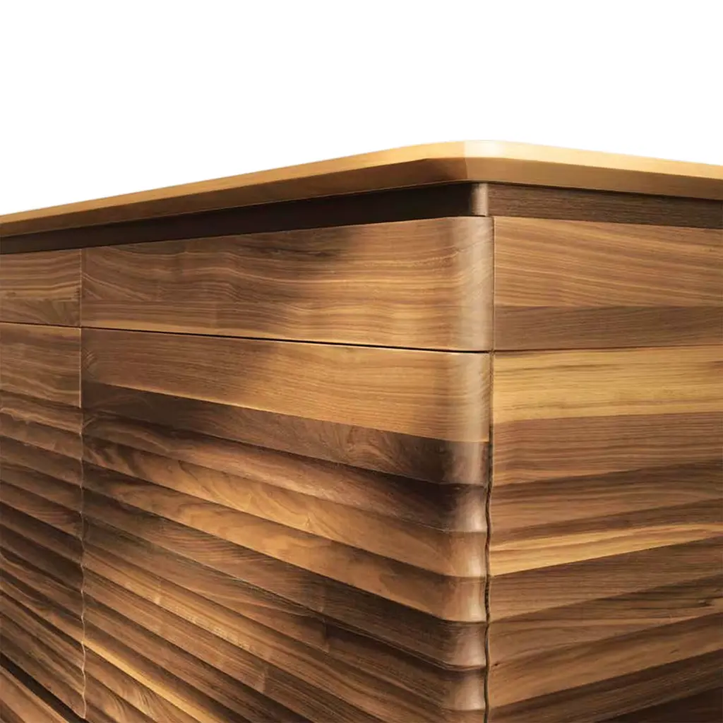 The Sinuo solid wood cabinet is the contemporary reinterpretation of a classic. A prestigious design piece, born from the experience and passion of our craftsmen. Its three-dimensional front creates a refined contrast between lights and shadows and makes the sideboard appear different depending on the perspective.