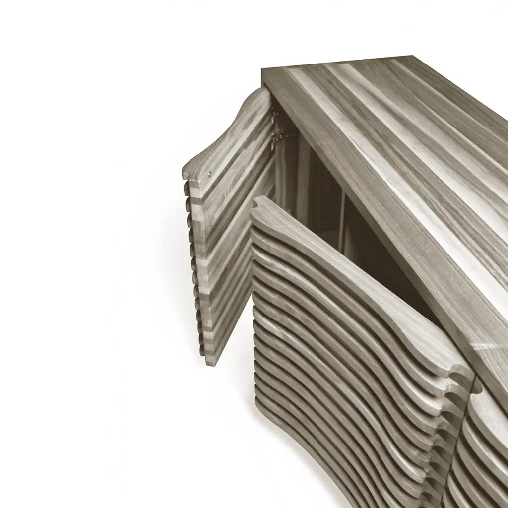 The Sinuo solid wood cabinet is the contemporary reinterpretation of a classic. A prestigious design piece, born from the experience and passion of our craftsmen. Its three-dimensional front creates a refined contrast between lights and shadows and makes the sideboard appear different depending on the perspective. Labeled by Maker