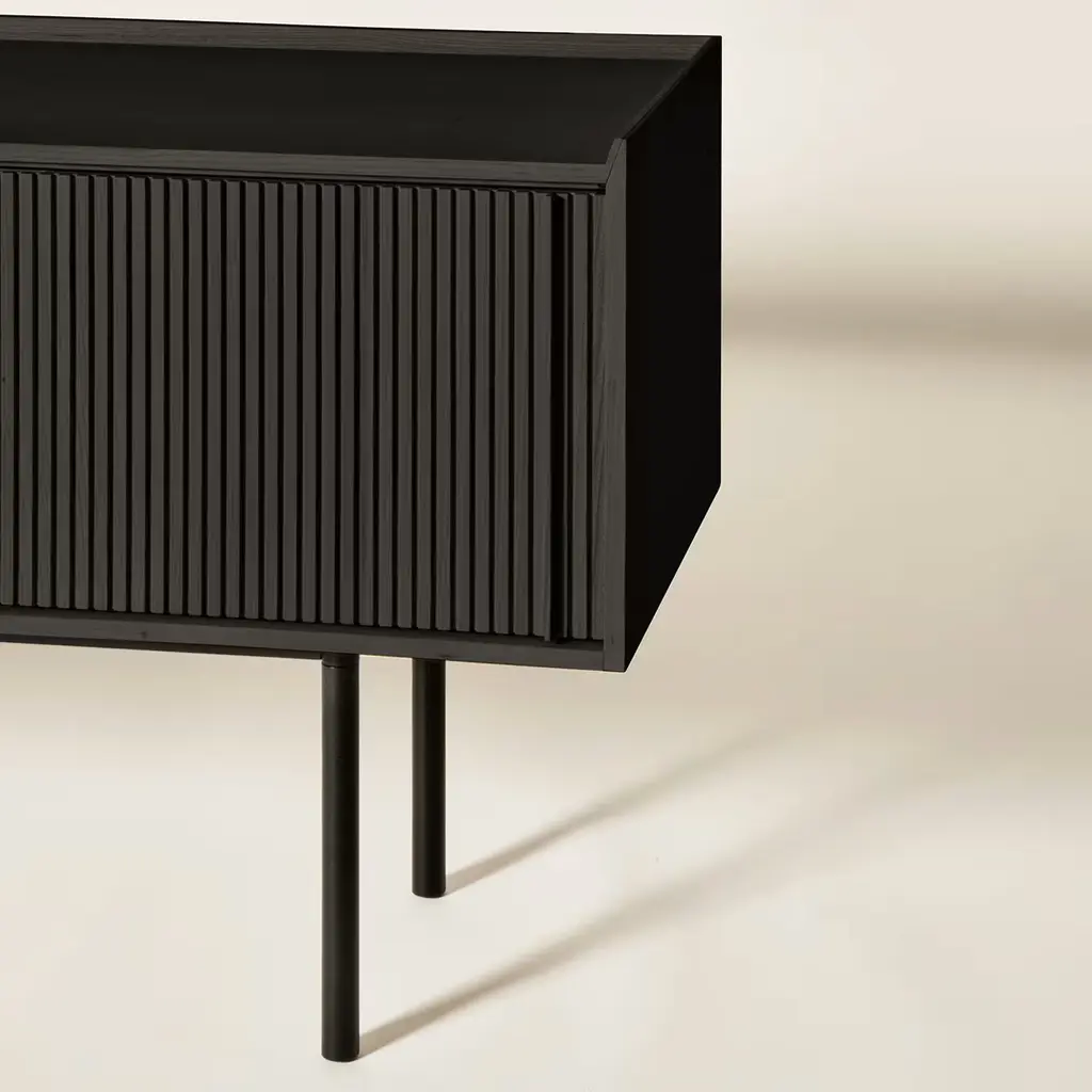 The Sipario sideboard creates a frame where the staggered layers and their vertical pattern produce a fascinating rhythm of shadows. As a result, the essence of solid ash wood reveals different details. The top is a deliberate invitation to give space to your everyday objects and fully enjoy the environment. This 2023 Collection is the result of a collaboration between Dale Italia's craftsmanship and the designers from Cono Studio. Please, contact the Concierge for further options.