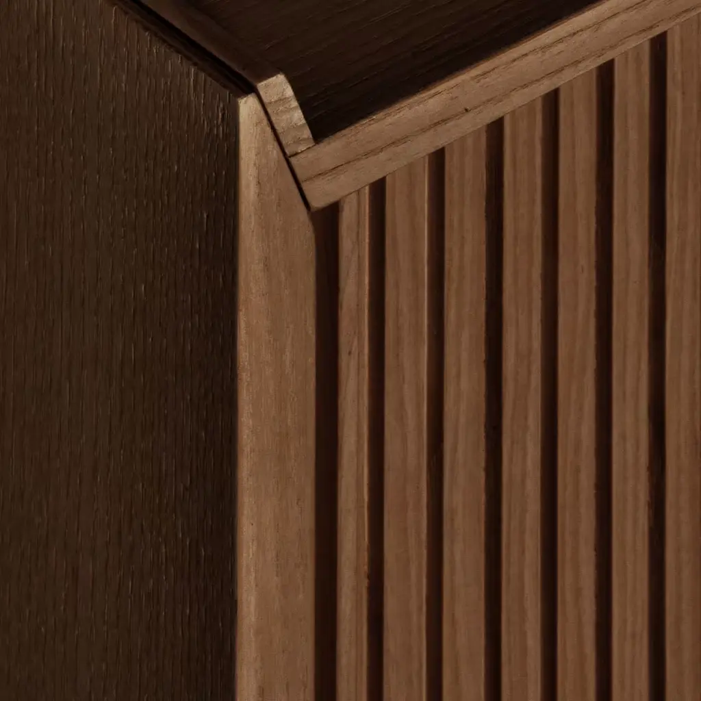 The Sipario sideboard creates a frame where the staggered layers and their vertical pattern produce a fascinating rhythm of shadows. As a result, the essence of solid ash wood reveals different details. The top is a deliberate invitation to give space to your everyday objects and fully enjoy the environment. This 2023 Collection is the result of a collaboration between Dale Italia's craftsmanship and the designers from Cono Studio. Please, contact the Concierge for further options.