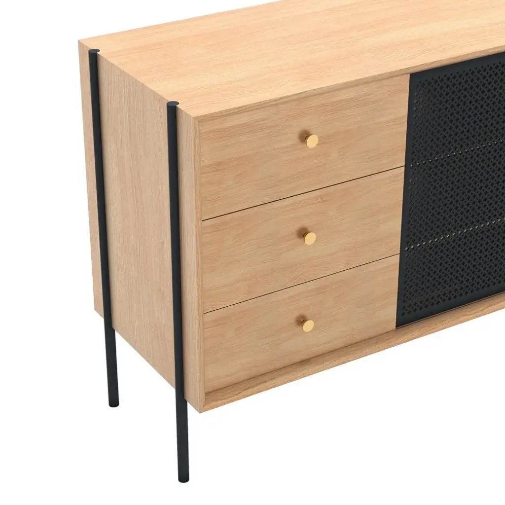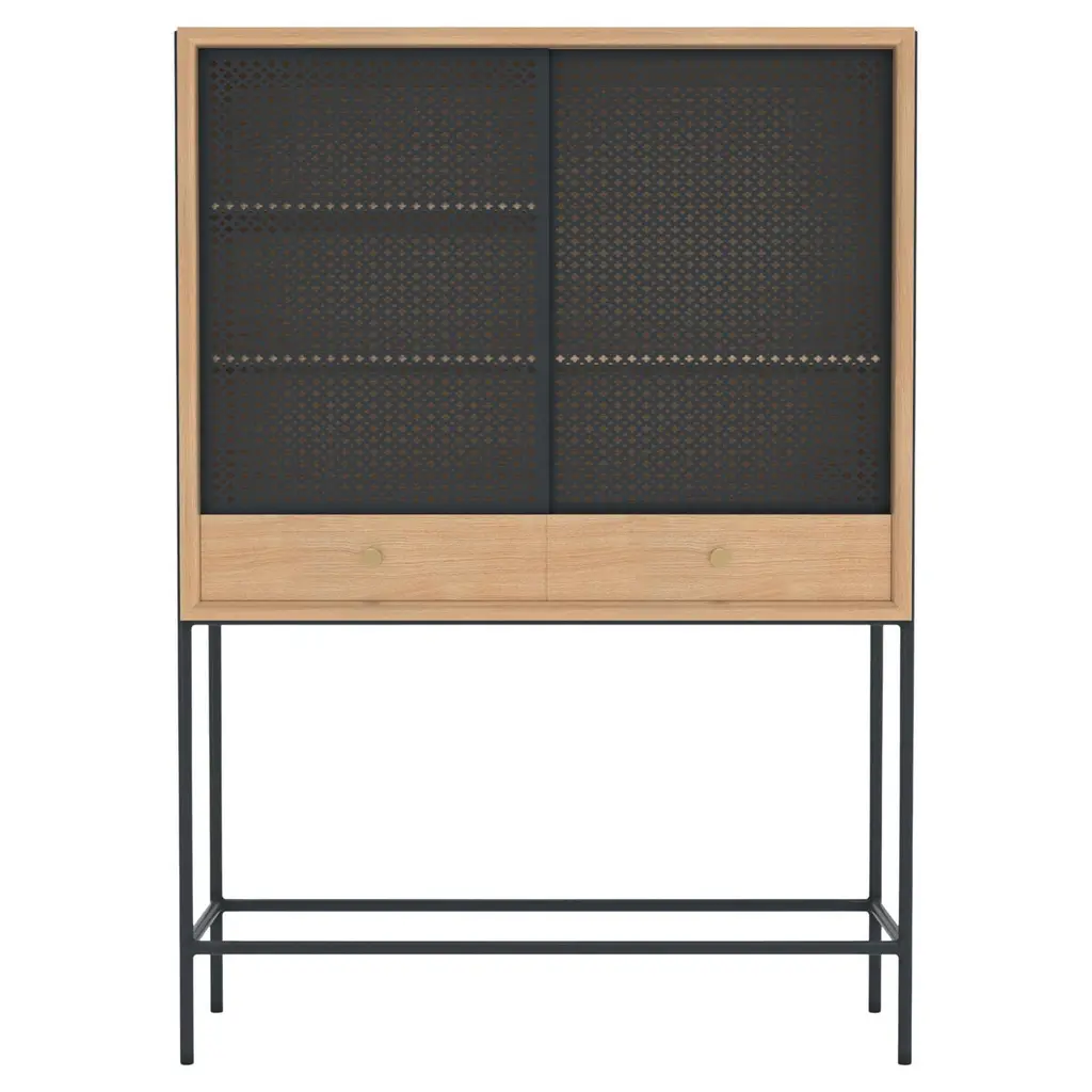 Slate Grey Metal Gabin High Sideboard In Natural Oak By Harto
