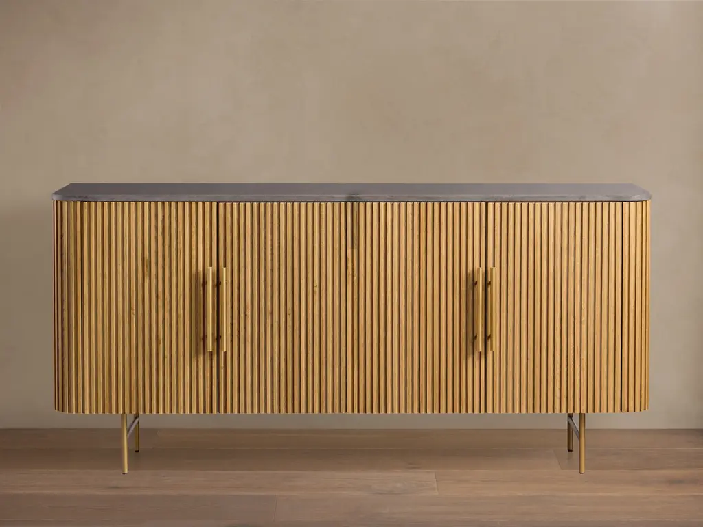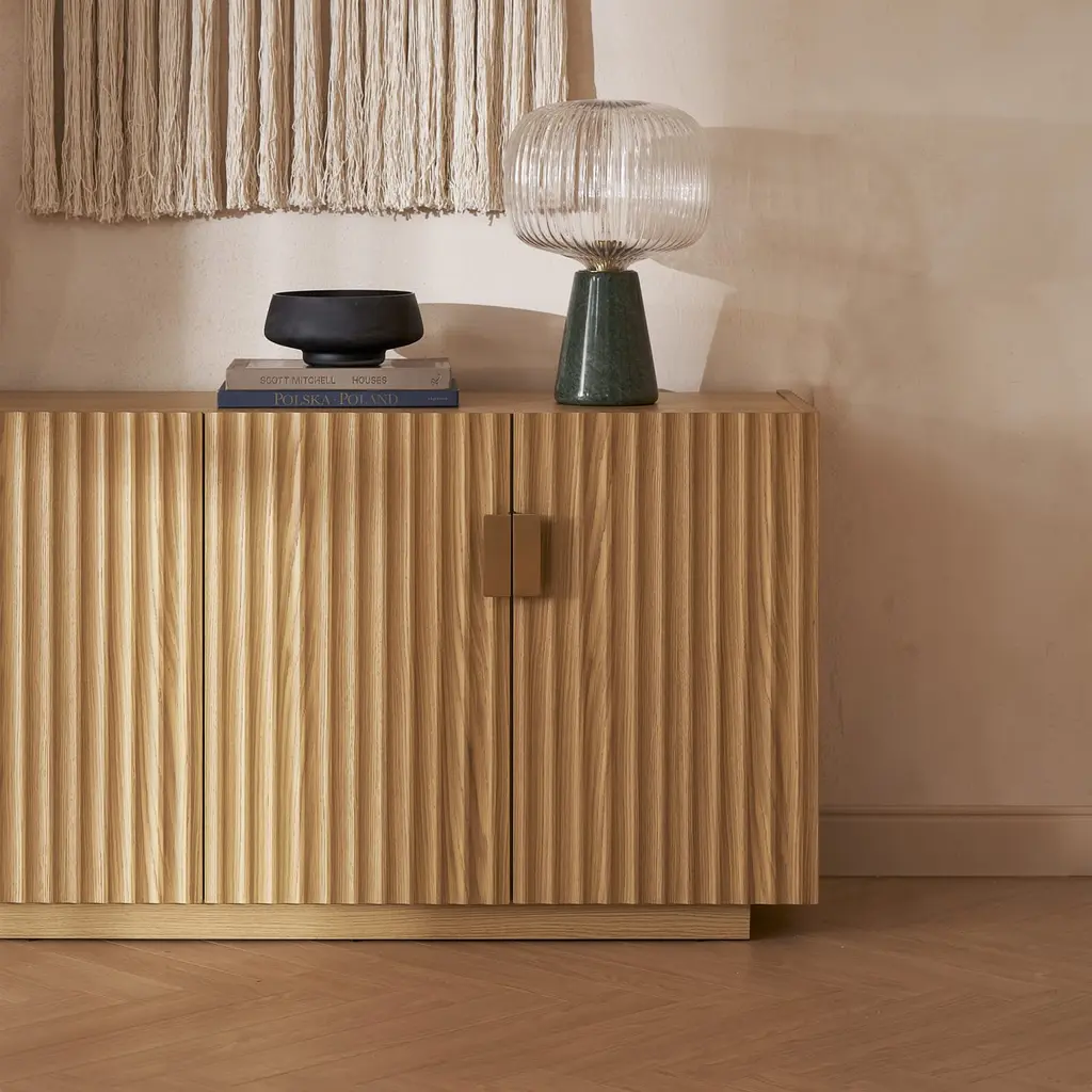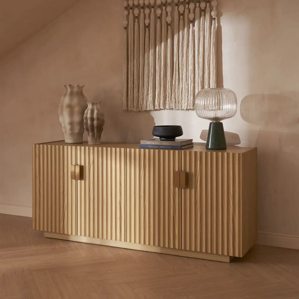 Fitted with subtle brass handles, Sloane delivers statement-making storage with classic fluted panels that complement your space.