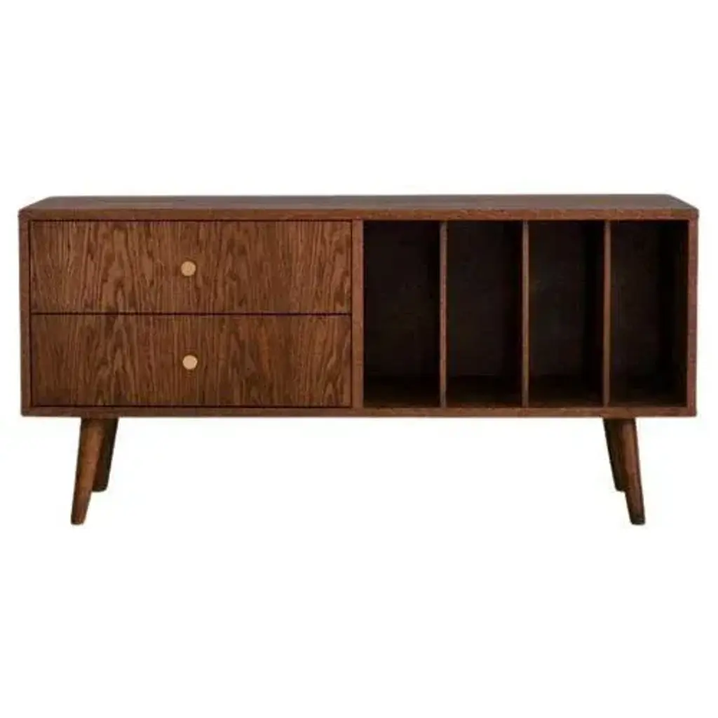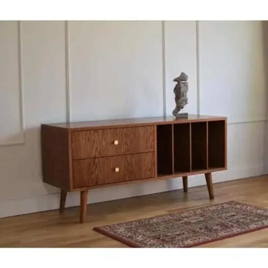 Tv mini vinyl small cabinet with drawers by pastform dimensions: d 35 x w 100 x h 57 cm. Materials: stained and varnished wood.