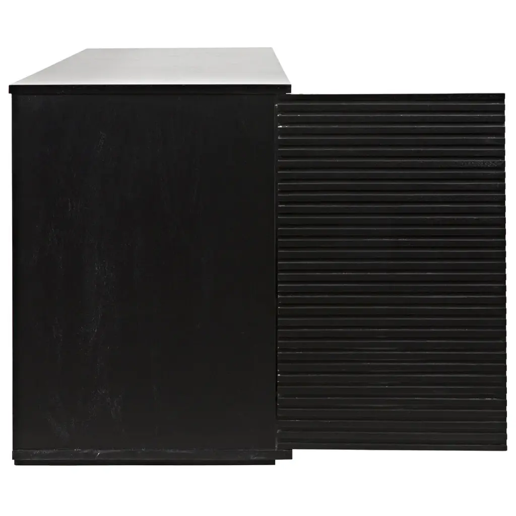 This handcrafted and beautifully finished mahogany sideboardÕs easy lines are enhanced with four hand-carved cupboard doors that open with a touch to reveal generous interior storage. Finished in a hand-rubbed black, it is a timeless look that can be easily integrated into any home.