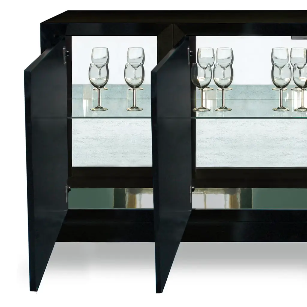 This four-door sideboard is beautifully crafted by the finest Italian artisans and is finished in a hard, super sleek black gloss lacquer. The wooden handle in the shape of half-spheres adds subtle glamour. Designer: Isabella Costantini. Please ask the Concierge for customization options.