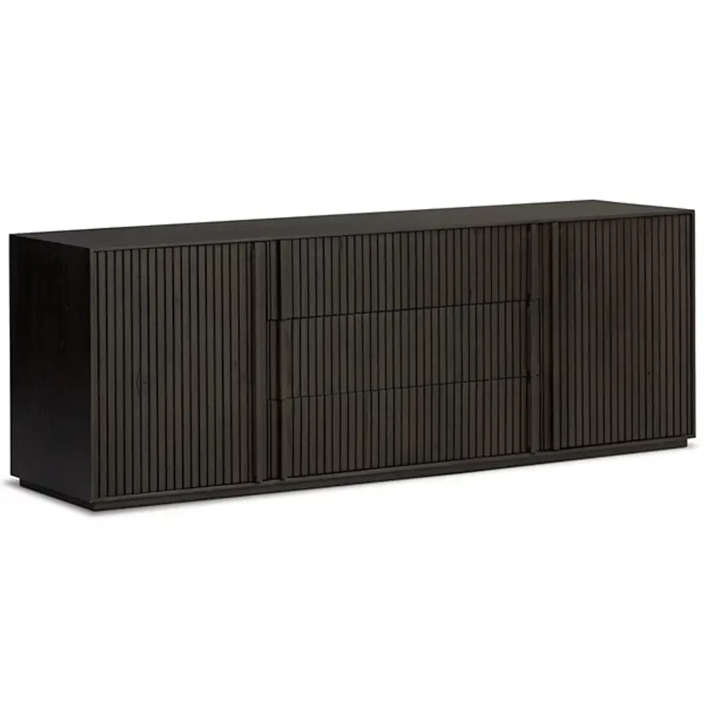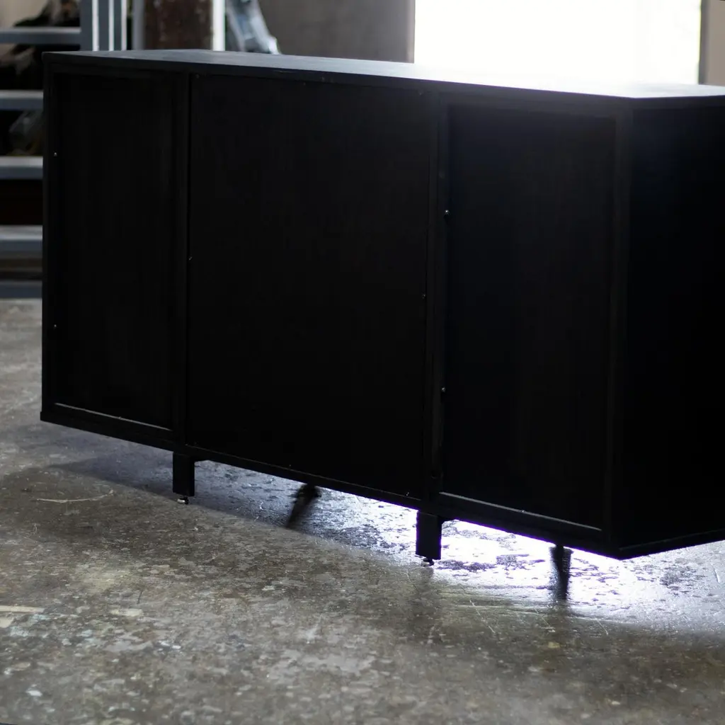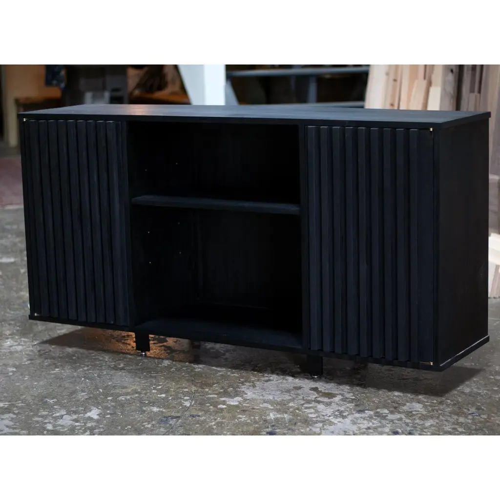 Solid Walnut Two Door Credenza In Black Finish