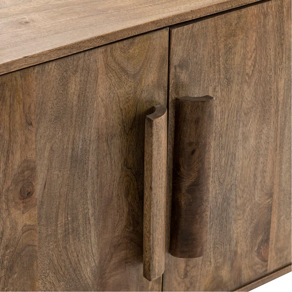 The Wooden 4 Door Sideboard With Wood Handle is 32 inches tall and features Dark Brown coloring. The piece embodies a Contemporary theme.