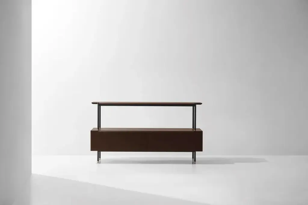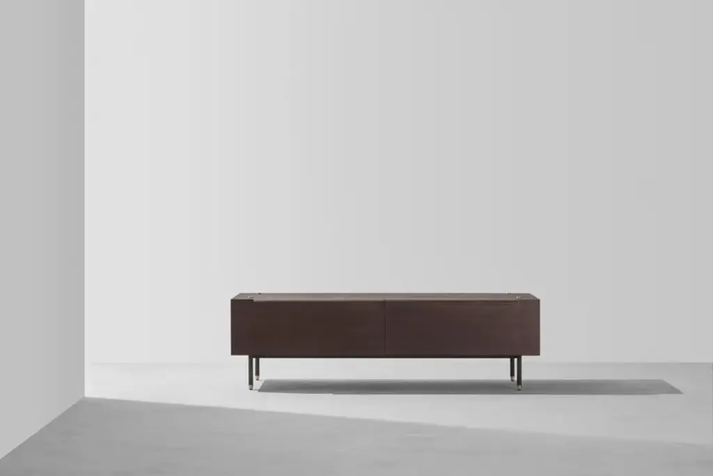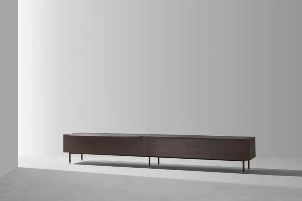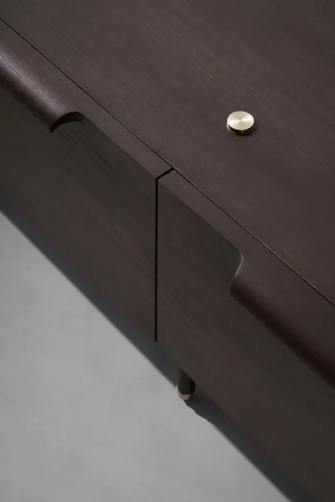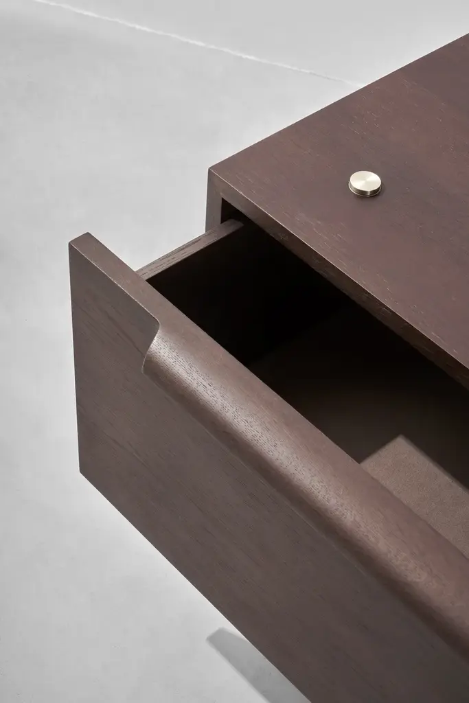 The Mid Cabinet is a valuable storage option that fits into the Stacking system, including drawers lined with moleskin.Material: Oak, Black Steel LegsCreative solutions for seating arrangements, storage and shelving systems. The Stacking collection features linear and symmetrical design crafted from oak, blackened steel and brass details. Distinct as standalone pieces, the modules can also be easily joined in respect to the purposes of spaces.