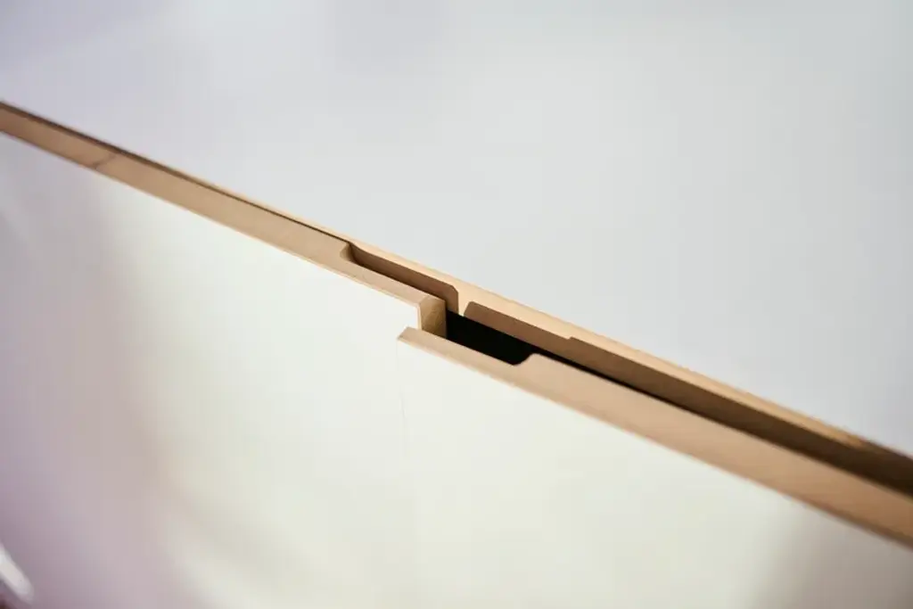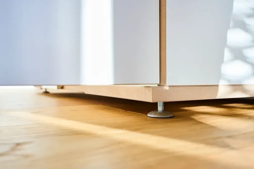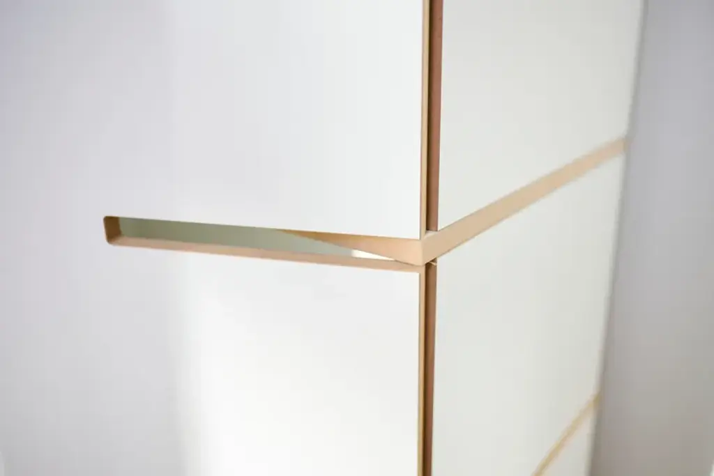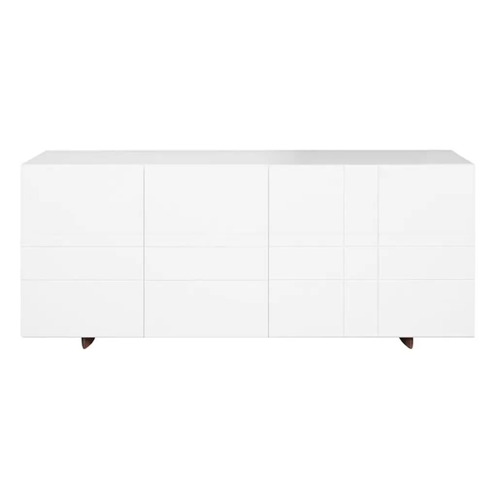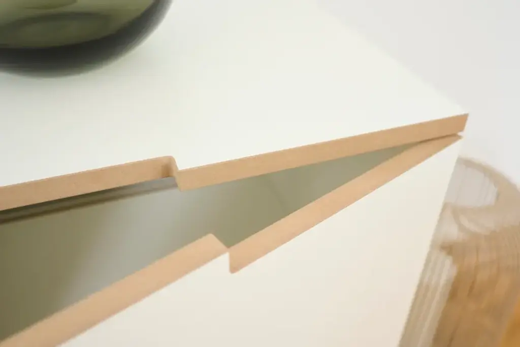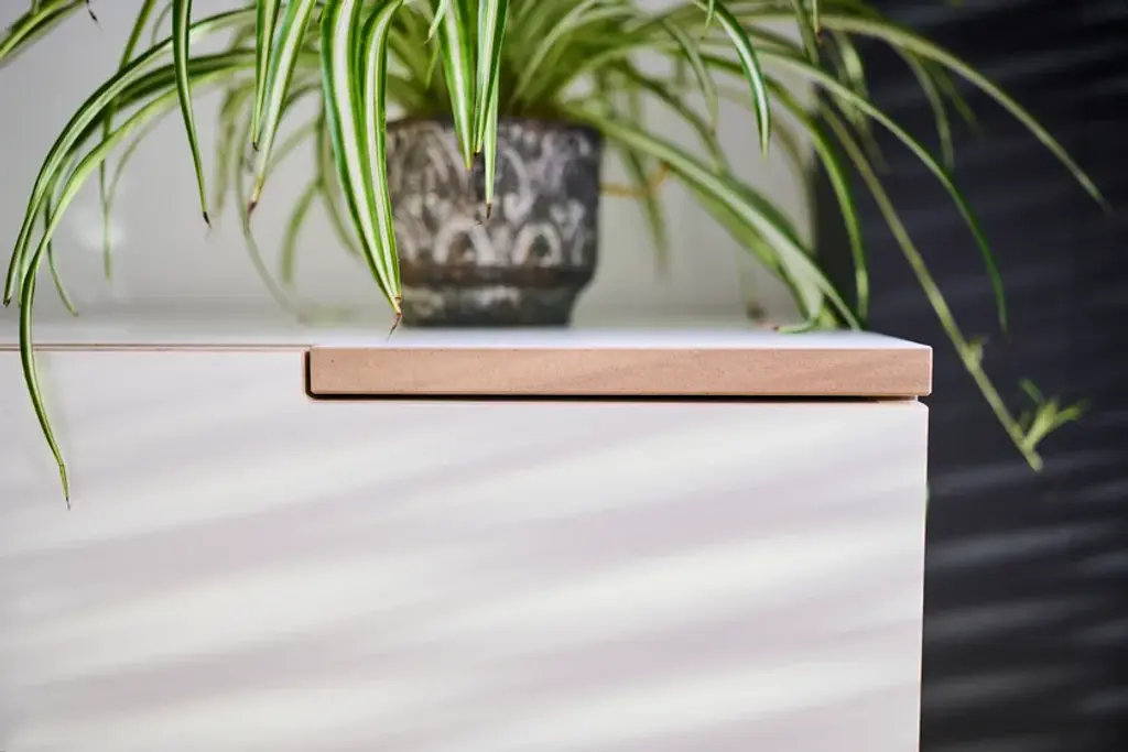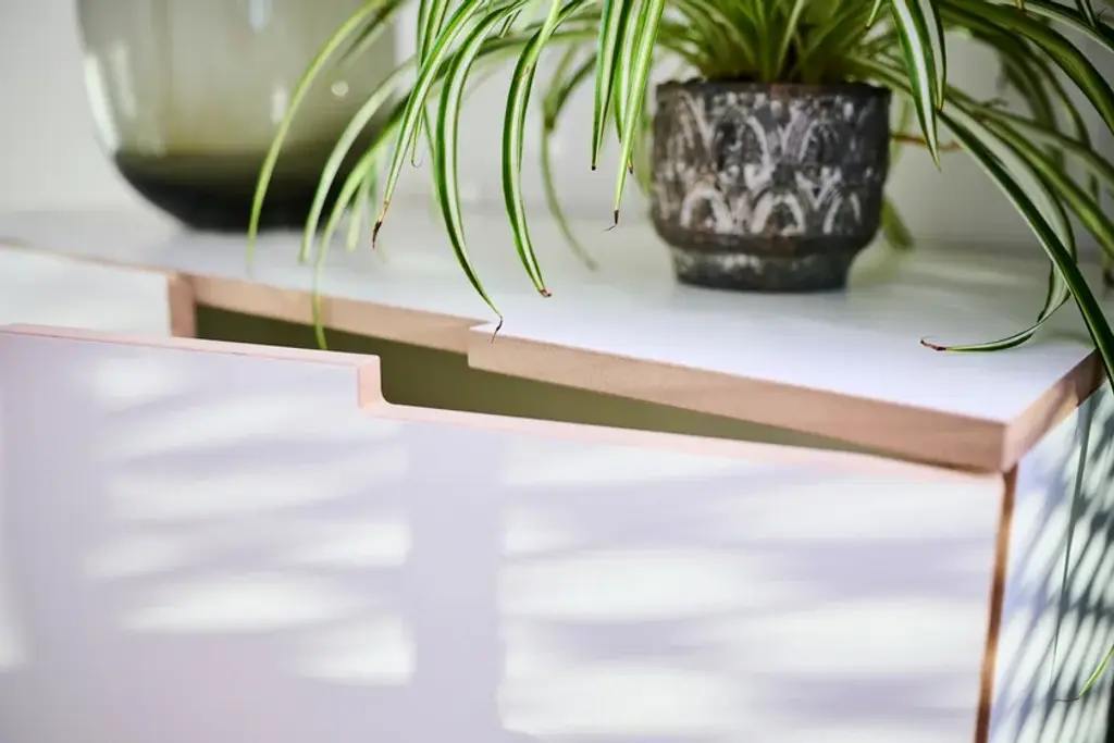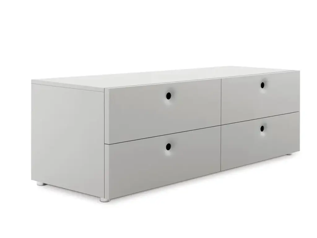 Stau is a puristic sideboard. It will be available in three different sizes and finds its individual use through this diversity. There are three different widths in 3 height variants each to choose from. Tojo-stau is perfect for any move and becomes a long-lasting companion - whether in the living room, dining room or study. The doors can be opened by a recessed handle at the top which supports the reduced look. The sides and outer doors are visually broken by the shelves and illustrate the shelf heights, which are also suitable for file folders. As flat-pack furniture and component-optimized, the carcass can be assembled and disassembled by one person without tools. Only for the fastening of the hinges a tool insert is necessary.