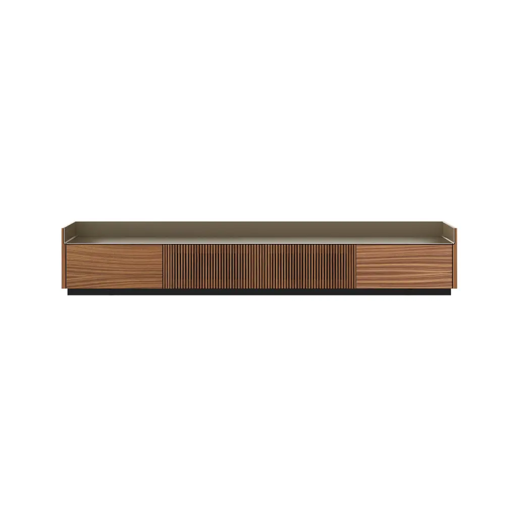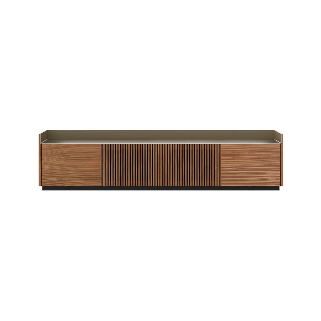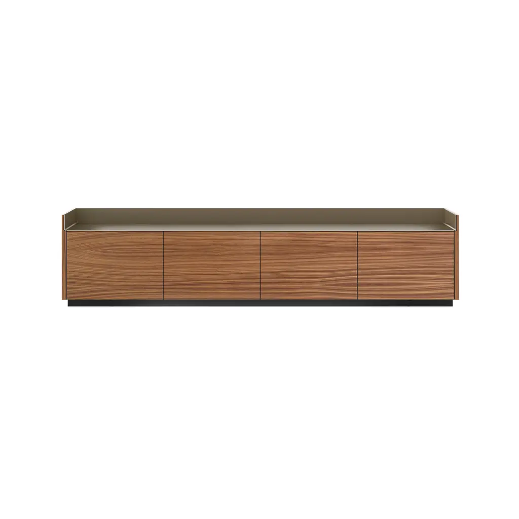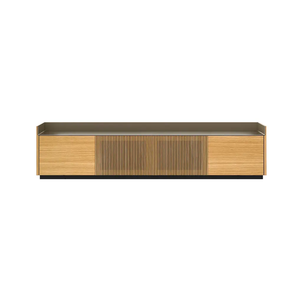 Behind 4 slatted TV doors, this version of Stockholm Technic reveals a number of storage compartments with adjustable shelves as well as cable management and rear plug access. Designer Mario Ruiz’ sleek sideboard offers a range of fine oak and walnut veneer finishes, topped with the series’ lustrous aluminum top surface and situated on a slender metal base.