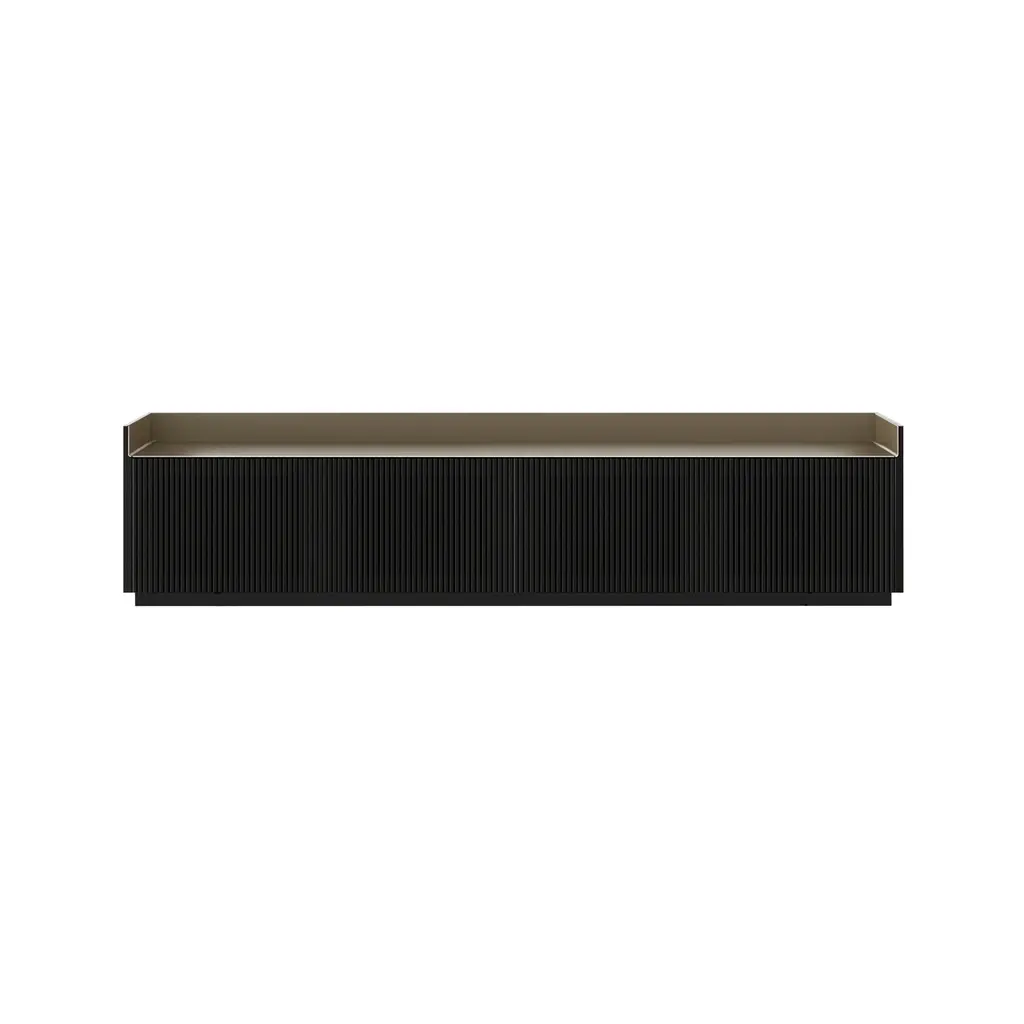 With a unified facade of 4 TV doors with open slats opening to separate compartments, this Stockholm Technic Sideboard brings generous storage space and entertainment-friendly cable management and rear plug access. The cabinet’s range of oak and walnut veneer finishes is topped by a lustrous aluminum top surface and sits on a slender metal base.