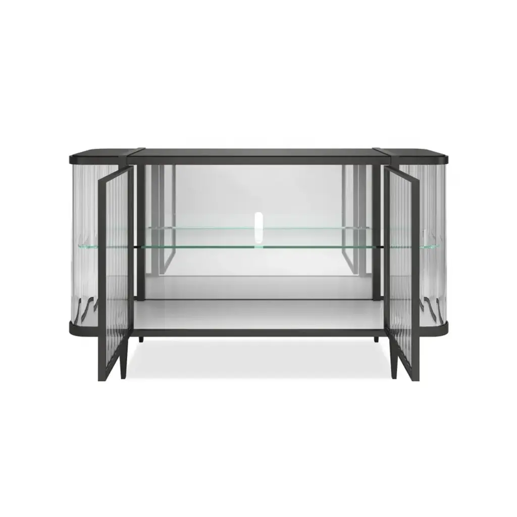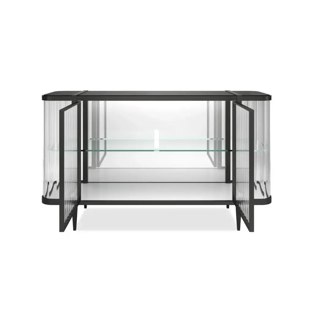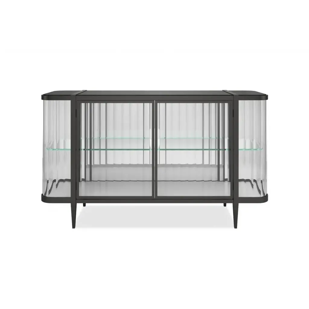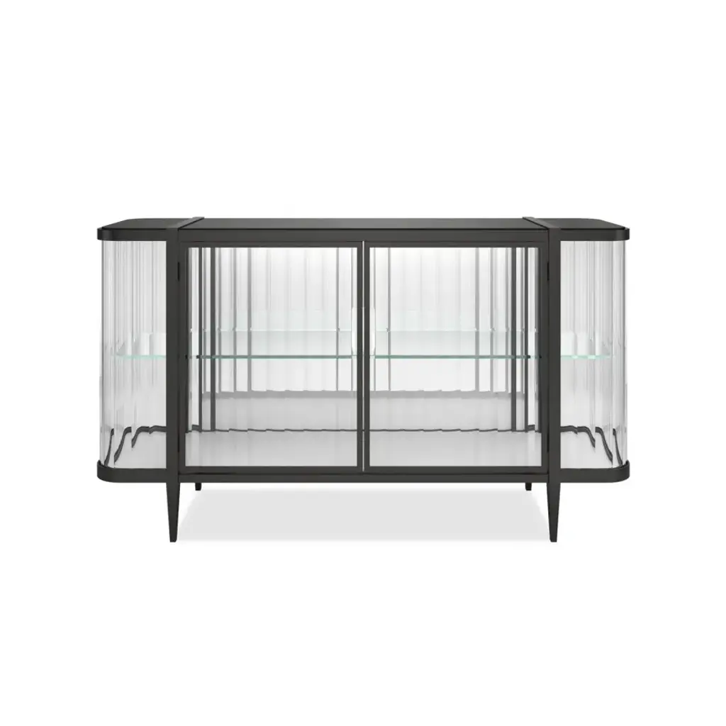 It’s true, this console is so extraordinary, you can’t help but Stop And Stare. It’s an instant source of brightness and reflectivity that creates a natural focal point. A wavy acrylic exterior mirrors the undulating patterns of sand and sea while its top adds another layer of organic splendor. The mirrored interior back and bottom panels are designed to reflect light as it pours in from every angle as well as mirror the beauty of the treasures you display. Glass shelves ensure unobstructed views as do its touch-latch doors with concealed hinges. A Brushed Deep Bronze outlines its rounded silhouette and four tapered feet, imparting the overall luxe feeling of a diamond in a platinum setting.