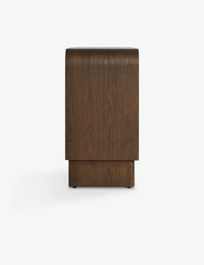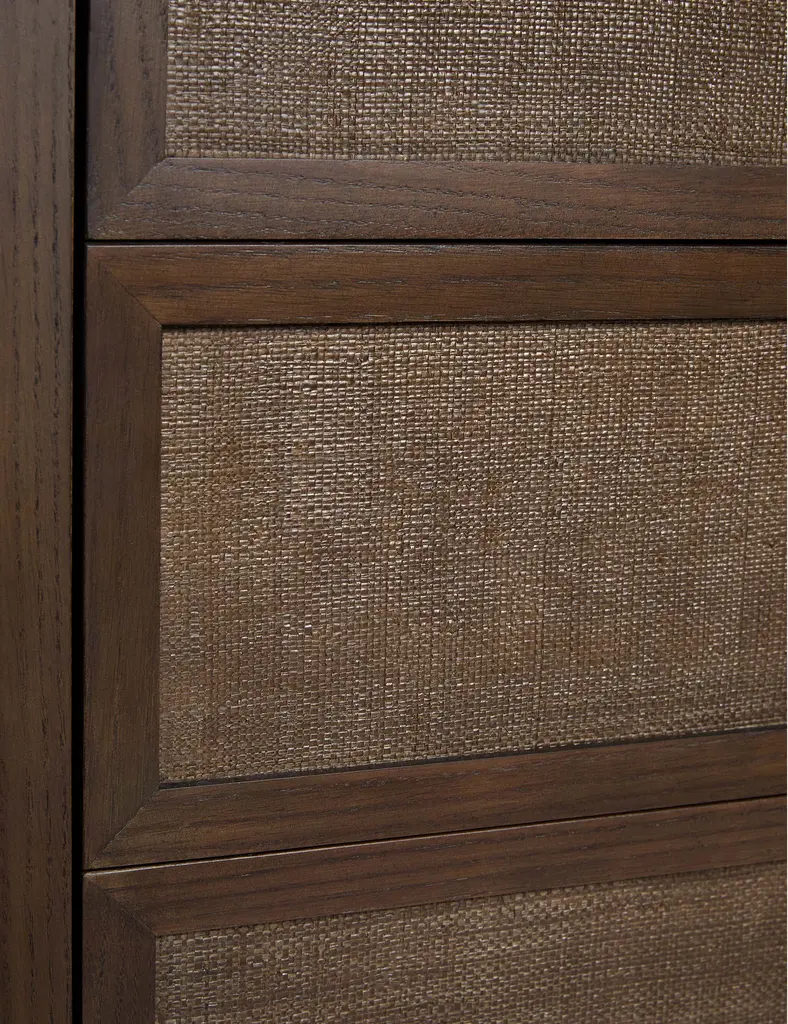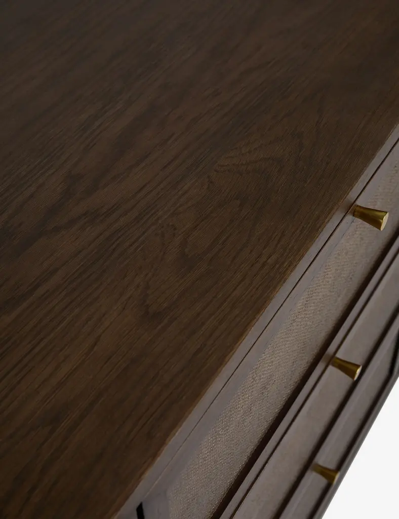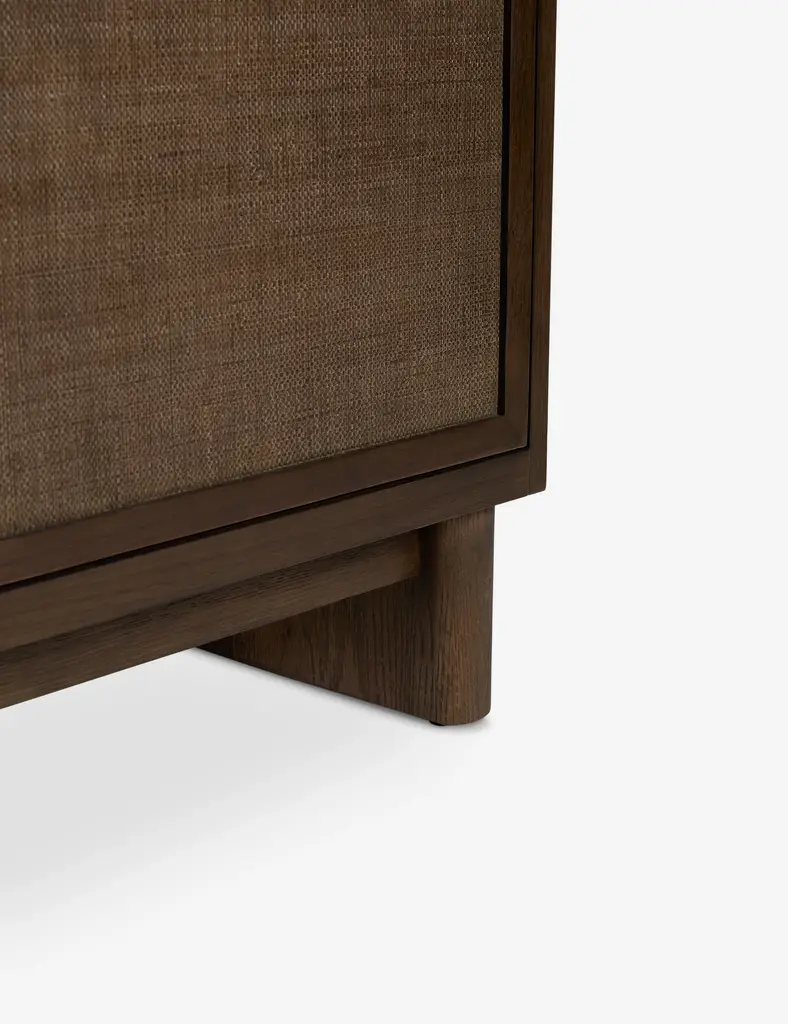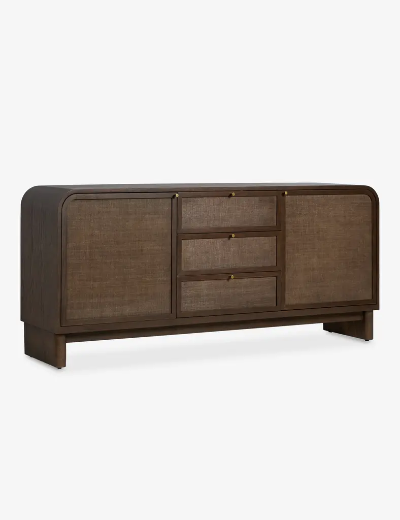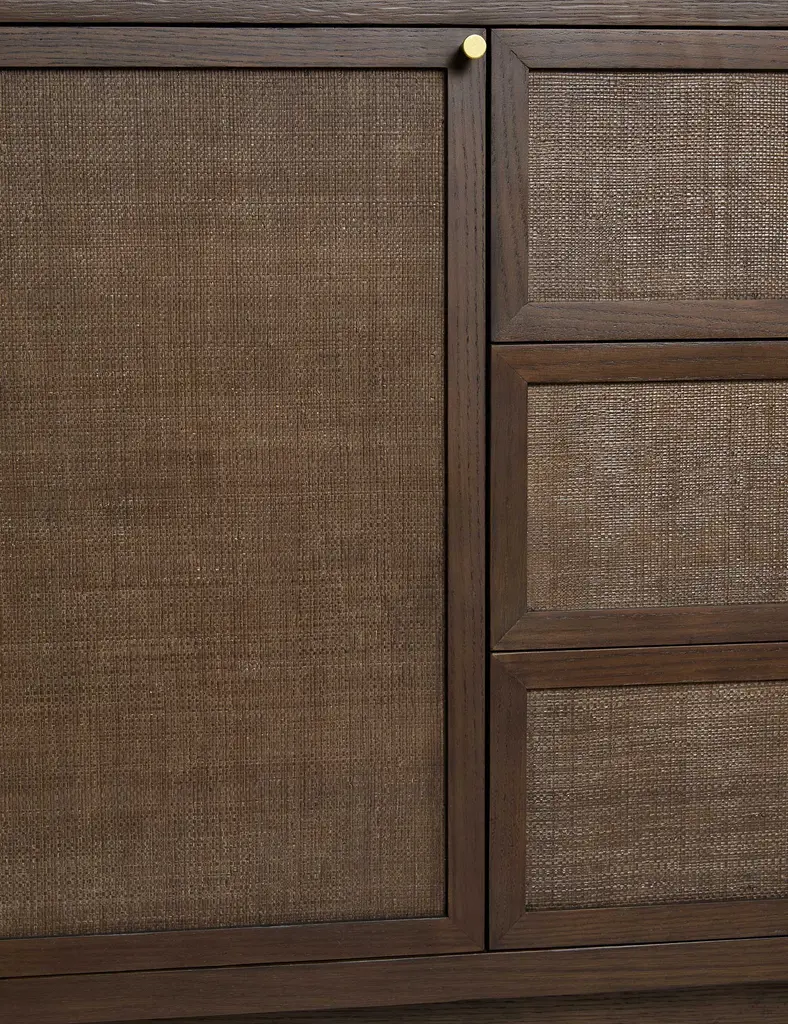 Keep it timeless for a look that's always fresh with Suzette. The collection's rounded oak frames feature grasscloth paneling for a soft, airy feel full of natural texture appeal. Spacious storage with removable shelving and soft-close drawers brings a dynamic touch to this sideboard.