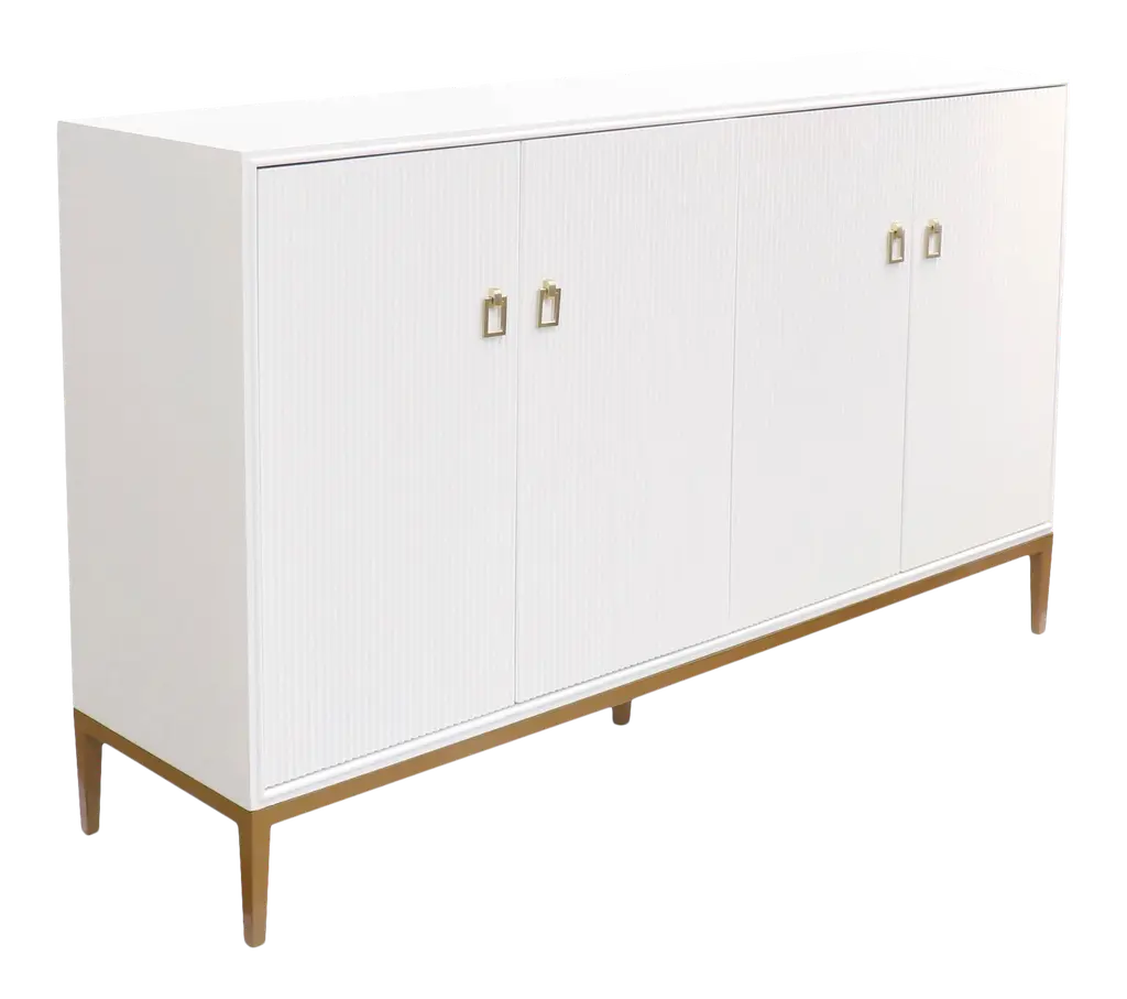 Channel your inner Mid-century style with the need to have Tabaria Sideboard by Lifestorey. A distinctive grooved pattern is etched on the front door panels lending a vintage type of vibe. Ideal for the dining room or kitchen, this spacious sideboard provides plenty of storage space, including adjustable interior shelves making it easy to store linens, dishware, serving pieces and more. Constructed of durable MDF in a neutral gray finish, this cabinet is tastefully accented with gold-tone metal handles and legs.