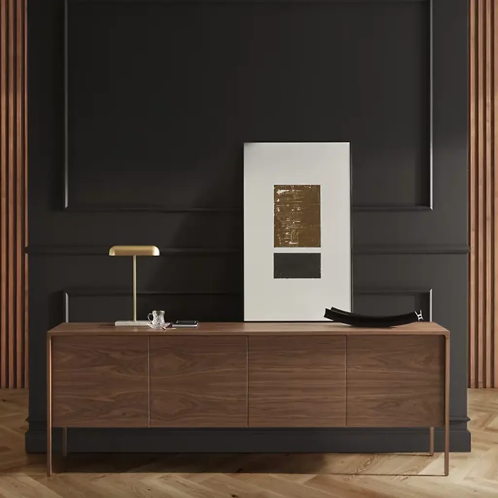 Keep your living space well-arranged with the Tactile Sideboard from Punt Mobles. This sideboard is designed by Terence Woodgate. The Tactile Sideboard is the winner of the Wall Paper Design 2008 award. Your sideboard takes on a streamlined, rectangular shape and is composed of walnut, giving this decorative piece its elegance while maintaining durability. The slender legs of the Tactile Sideboard are simply designed to keep the furnishment elevated and well-balanced.