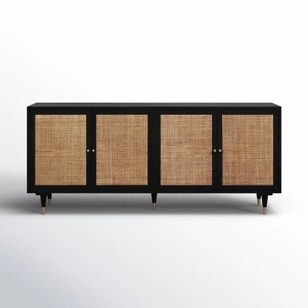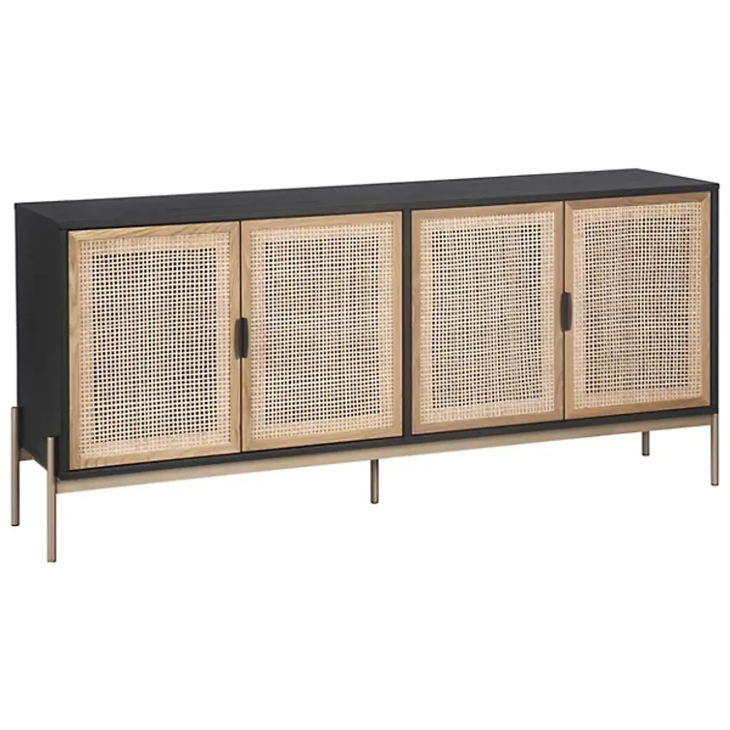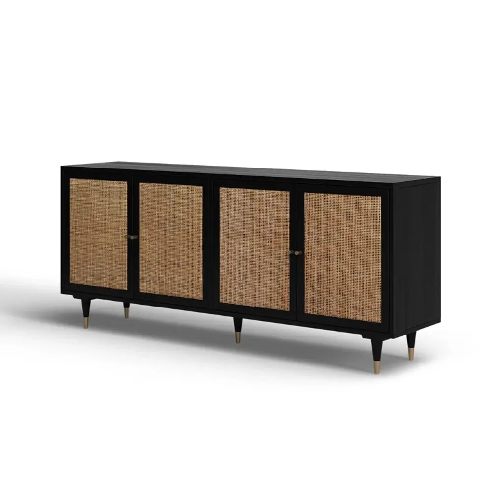 This sideboard pairs brass-finished details with a classic, clean-lined silhouette to give you a mixed-material design that's easy to blend in, even as it stands out. It's made from solid and engineered wood and features 4 doors with textured rattan fronts. This credenza is offered in your choice of finish, so it's even easier to incorporate into all sorts of different decor styles and color palettes. Inside the doors, it has four shelves with an adjustable board, so you can easily organize items of all sizes.