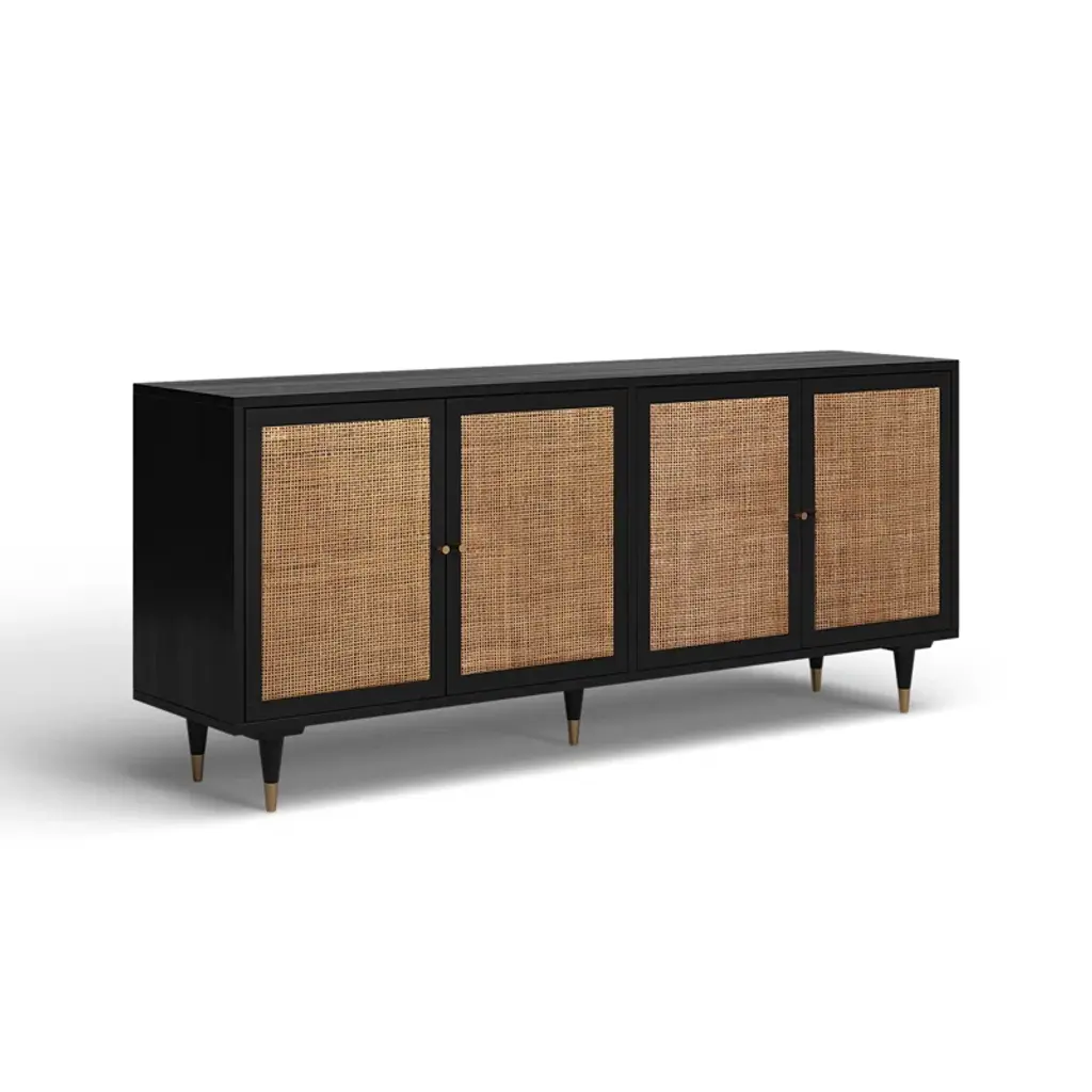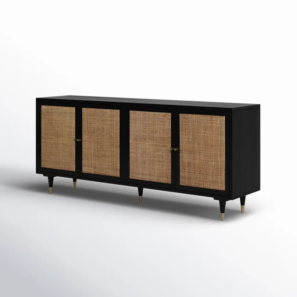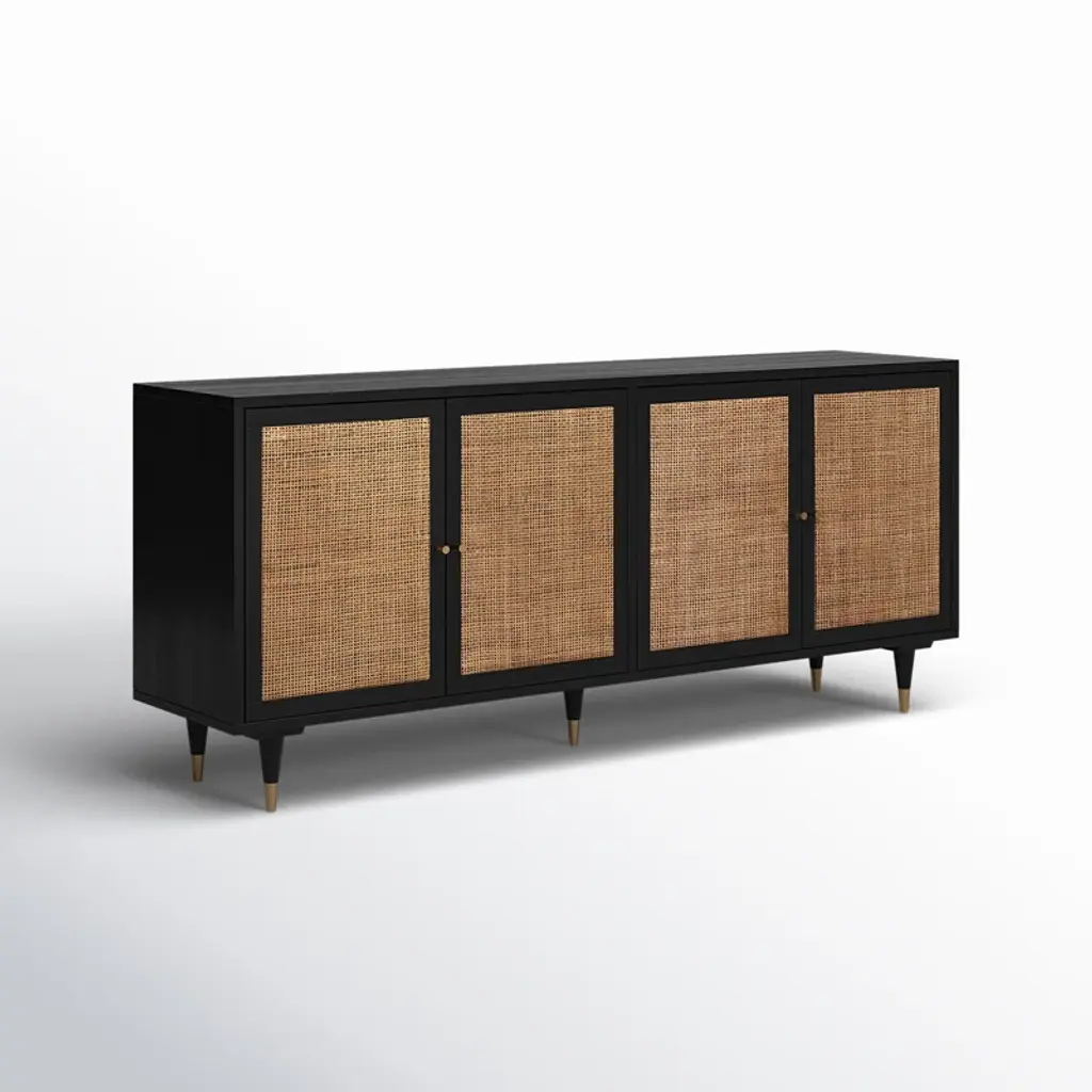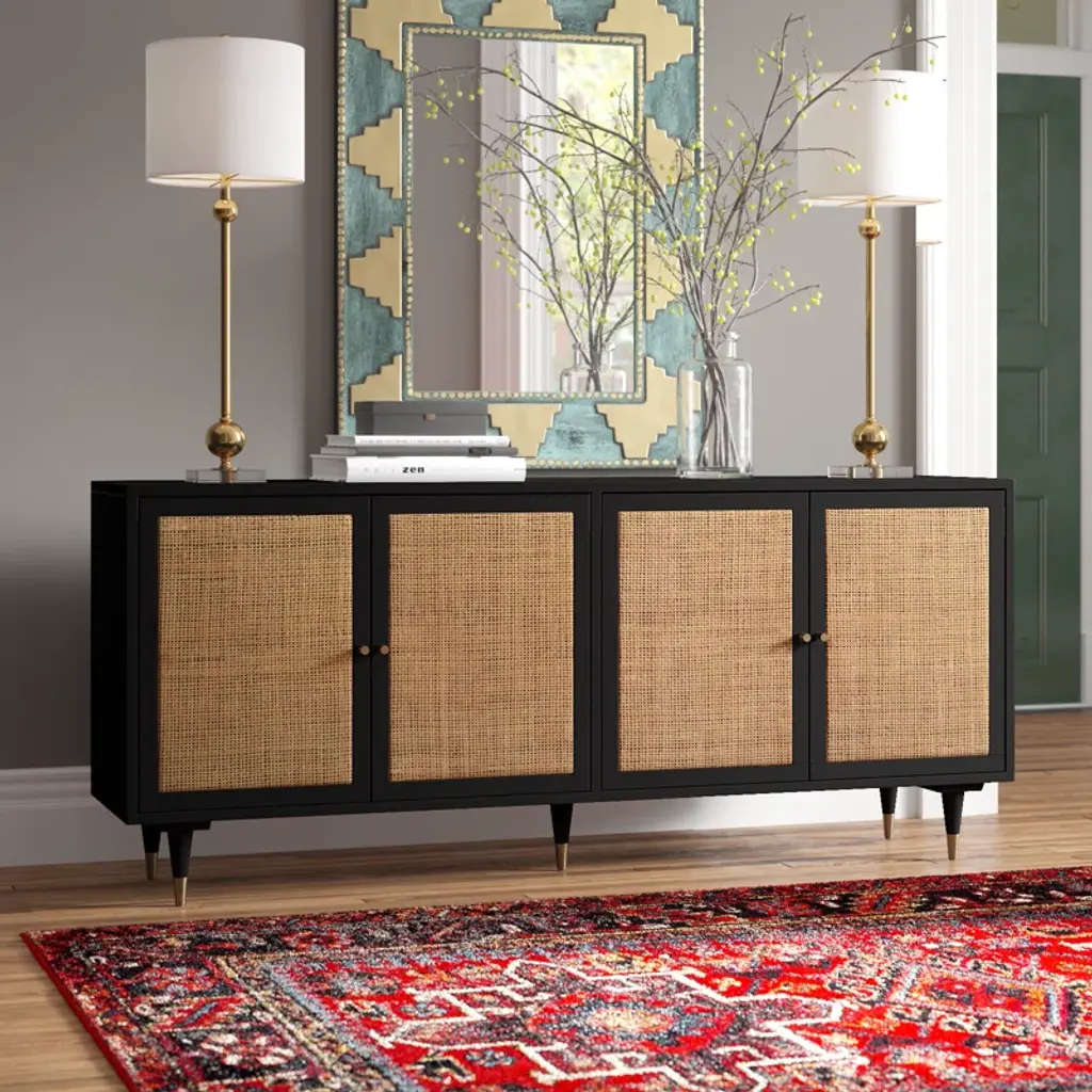 This sideboard pairs brass-finished details with a classic, clean-lined silhouette to give you a mixed-material design that's easy to blend in, even as it stands out. It's made from solid and engineered wood and features 4 doors with textured rattan fronts. This credenza is offered in your choice of finish, so it's even easier to incorporate into all sorts of different decor styles and color palettes. Inside the doors, it has four shelves with an adjustable board, so you can easily organize items of all sizes.