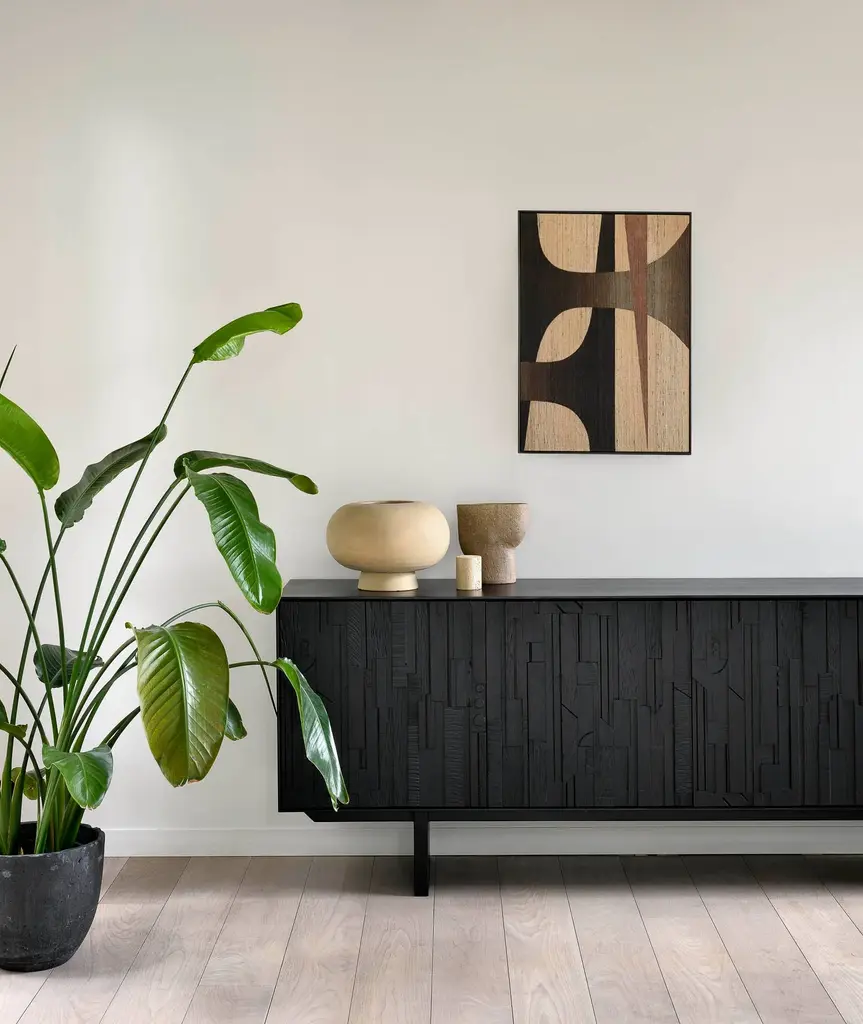 It all started with a happy incident. Inspired by the remaining offcuts from our factory designs, the layered wood pieces of the Mosaic sideboard form a rhythm, reminiscent of the partition of a pipe organ. Deeply influenced by music within his creative process, Alain van Havre offers a renewed translation of his obsession for movement.