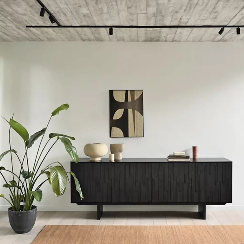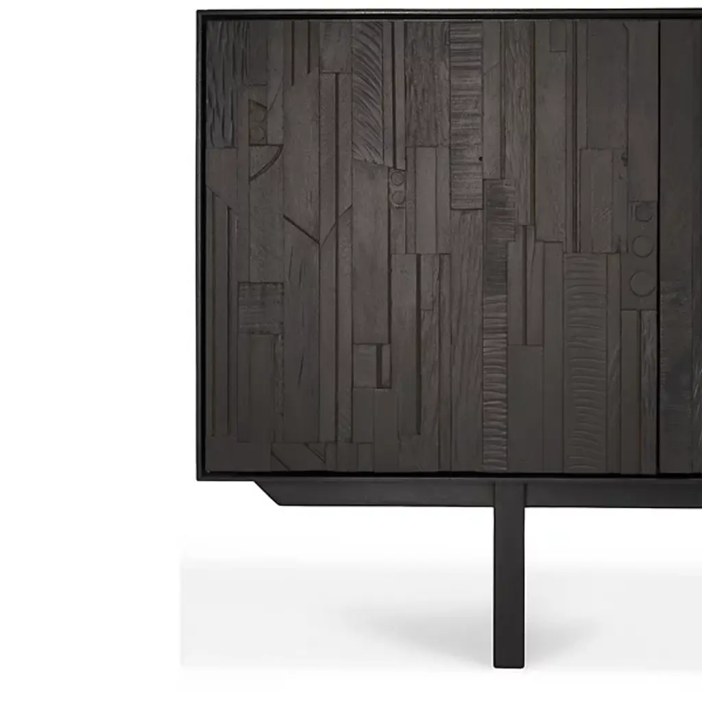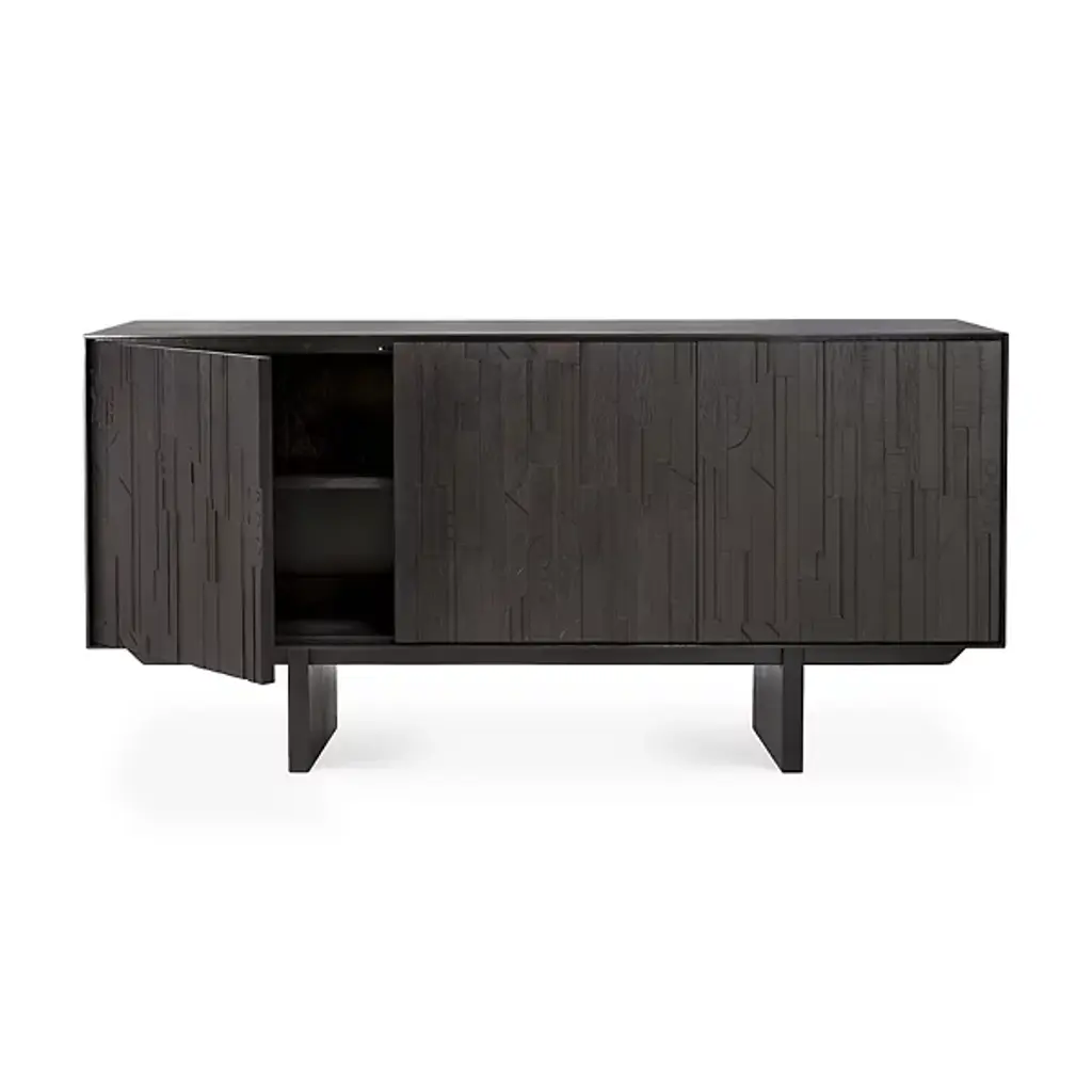 Bring a dose of style and more storage to the interior of your modern home with the Teak Mosaic Sideboard – 3 Doors from Ethnicraft. Made of natural teak wood throughout, this piece features a pair of thin yet sturdy legs that elevate the rectangular silhouette. The three doors reveal shelving while the wide top remains open and available, allowing for a multitude of setups and storage options ideal for your home.