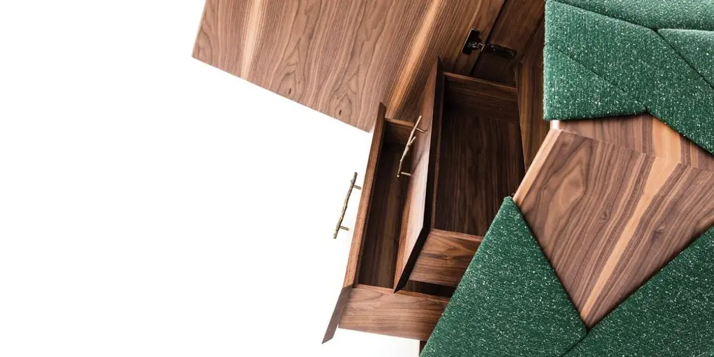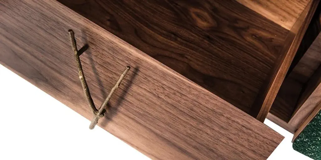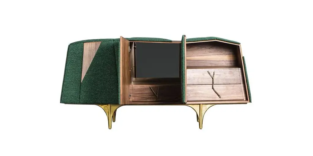 with the Le Notre sideboard, the splendor and exuberance of French baroque style is introduced. Clad in woven and walnut wood, the glamorous sideboard features a unique texture, an essence of sophistication and power, unique for a dazzling interior. Imprinted by Maker