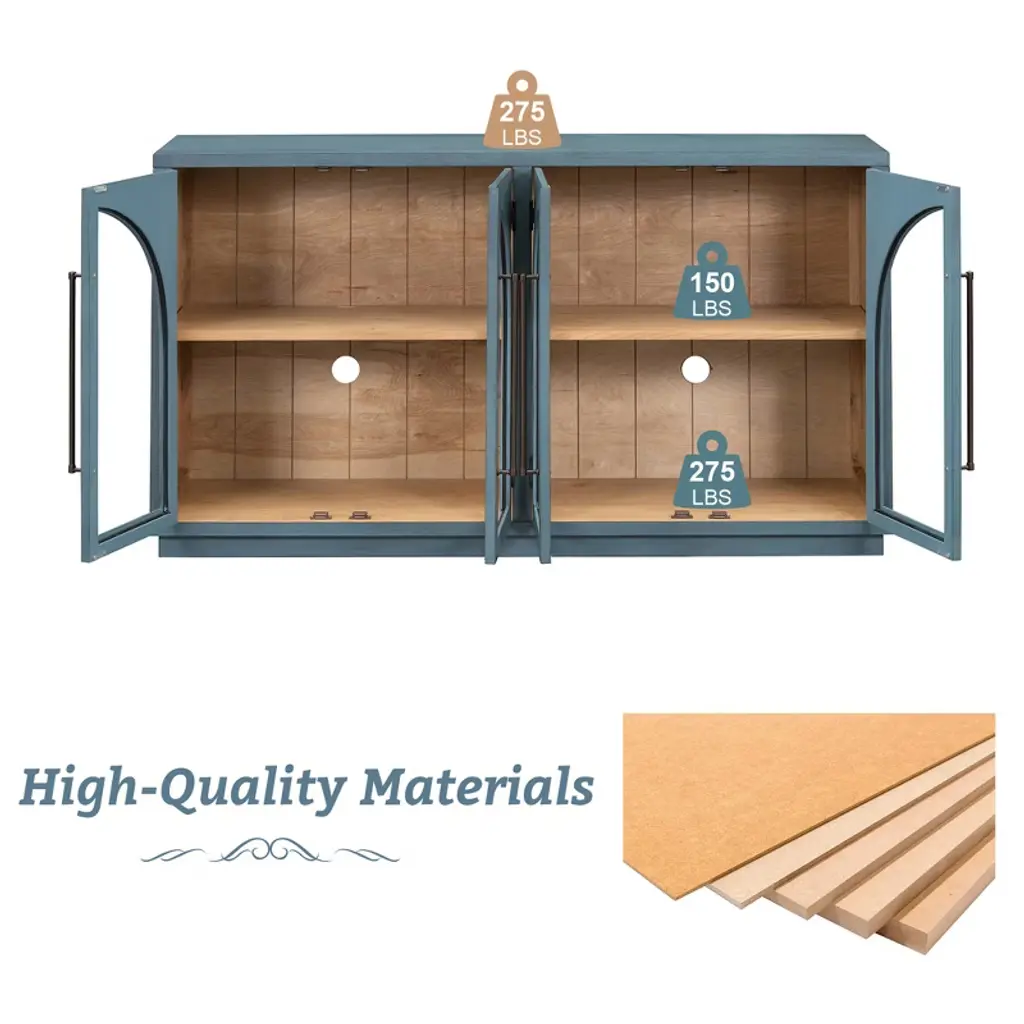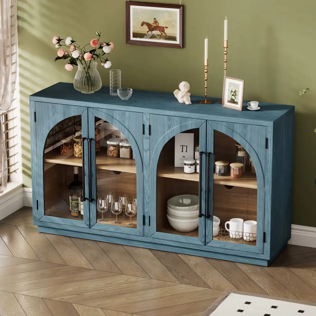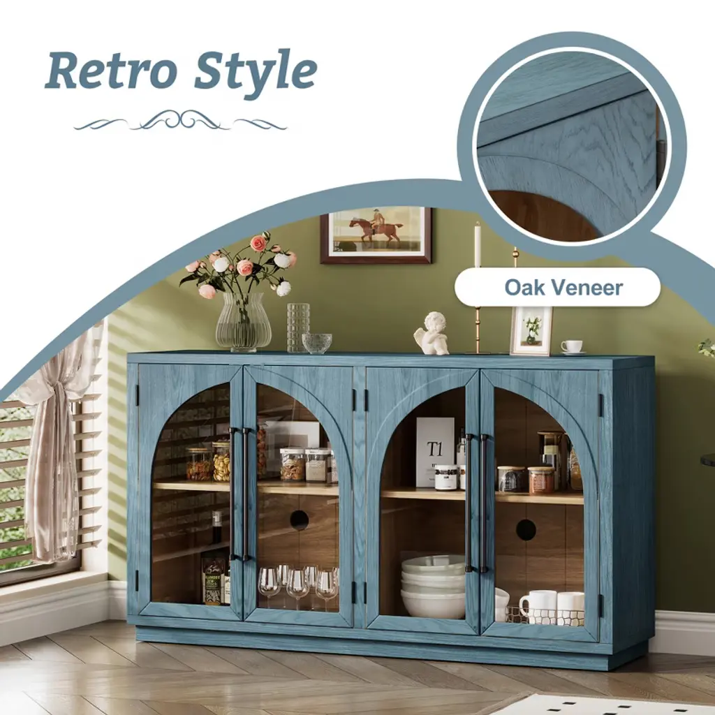 Tiramisubest 4-door Buffet Sideboard, Kitchen Storage Cabinet With Arched Glass Doors And Adjustable Shelves