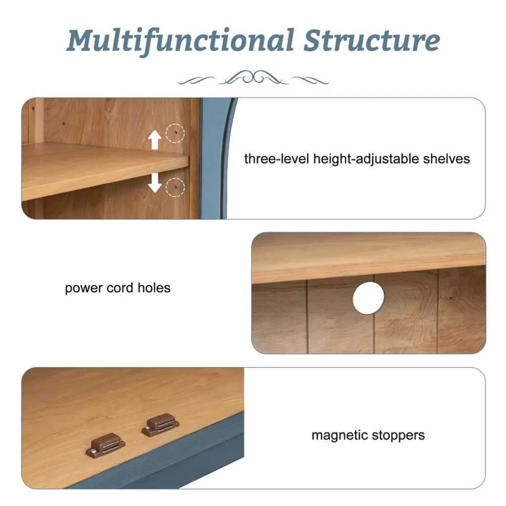 This arched cabinet adopts a traditional retro style, paired with superior glass material, adding uniqueness and personality to your furniture. Equipped with 4 durable metal long handles and clear lines on the backboard, it¡¯s a practical and stylish choice.