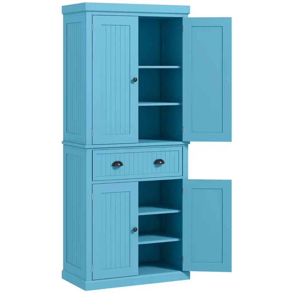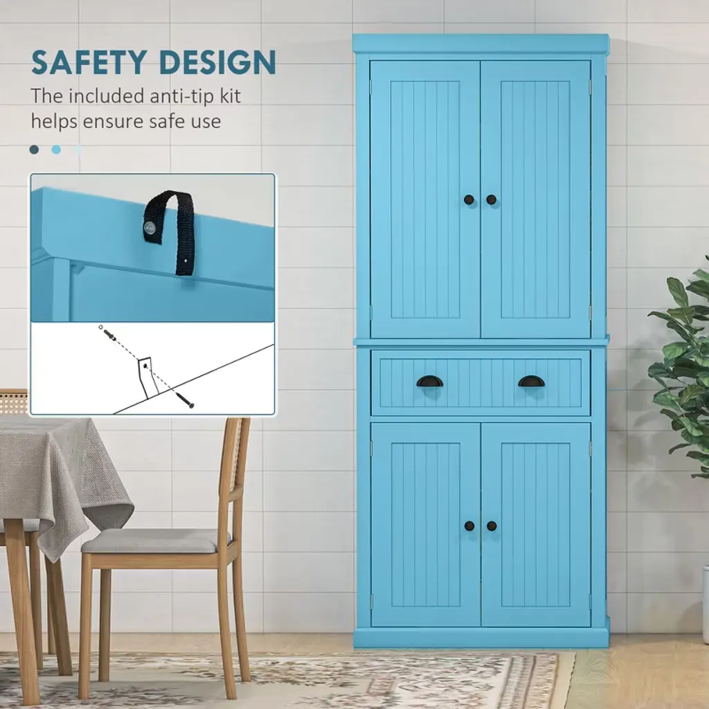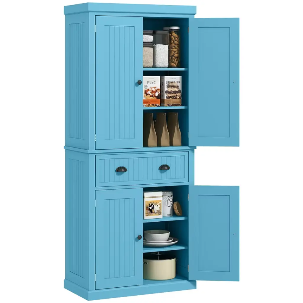 Tiramisubest 72" Pantry Cabinet - Farmhouse Kitchen Storage With 4 Doors, Drawer & Adjustable Shelves, Light Blue