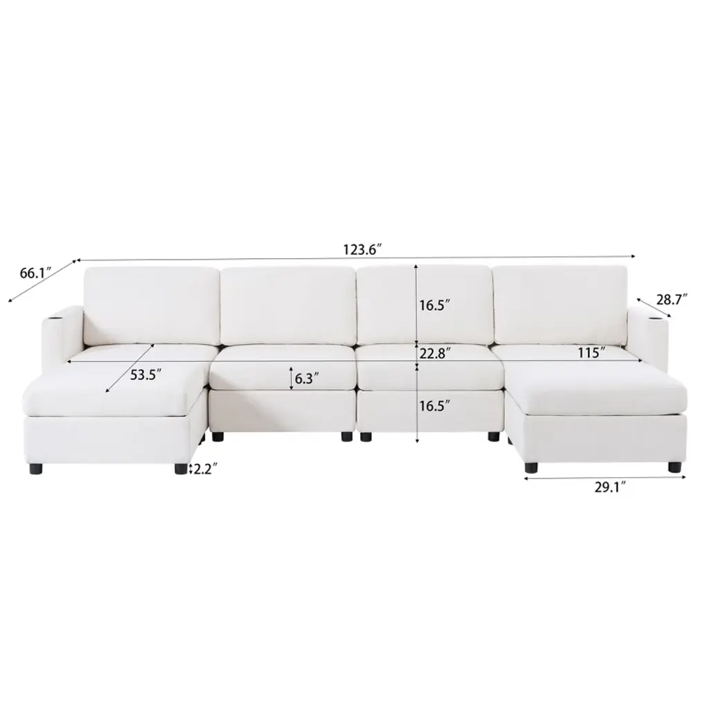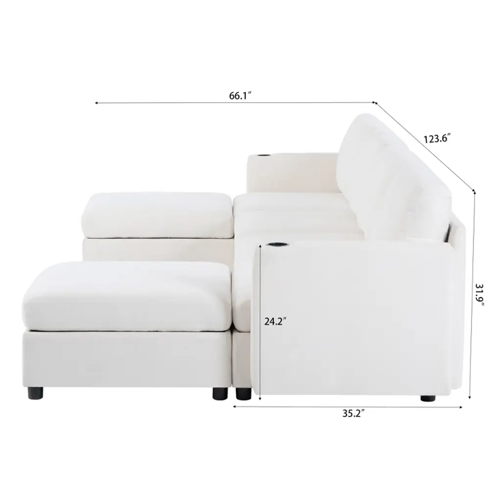 Crafted with Plastic, this multifunctional sofa features: - 123.62" dimensions for spacious seating - Dual-layer cushion system with high-density foam - Convertible pillow armrests with storage pockets - Sturdy 59.4lbs construction for durability