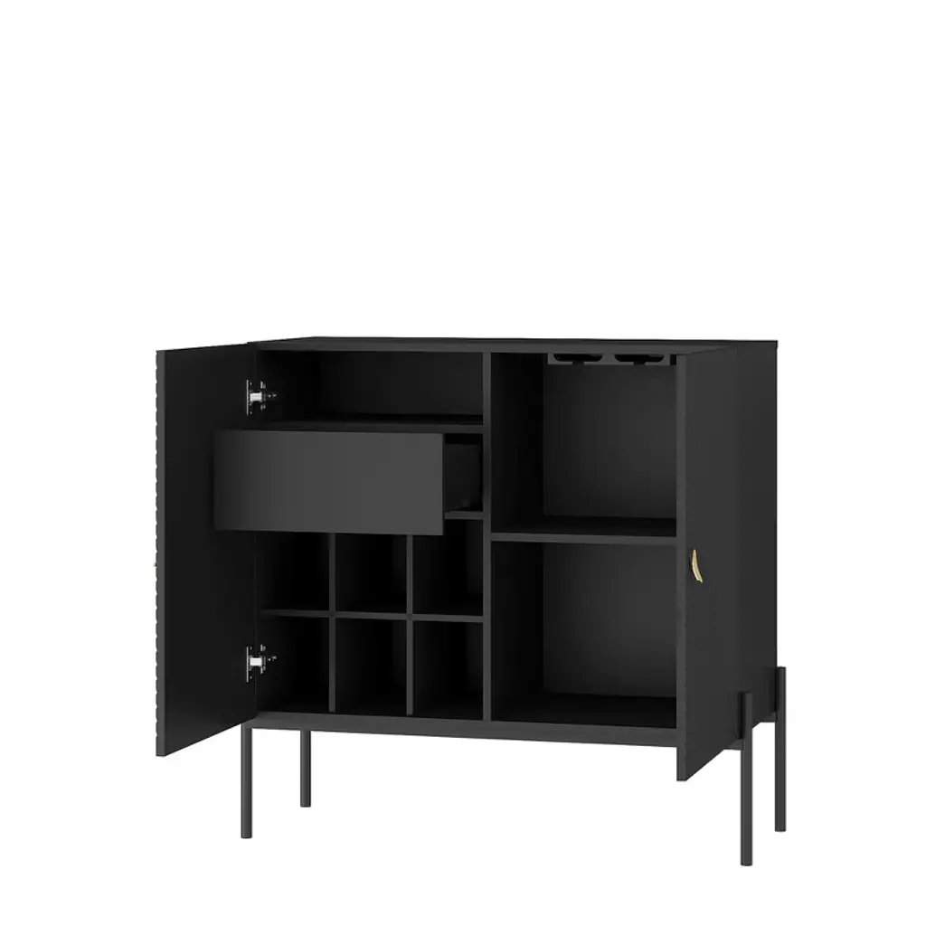 Tiramisubest Black Sideboard Buffet Cabinet With Wine Rack & Drawers - Modern Coffee Bar Storage For Dining Room, Kitchen Or Living Room