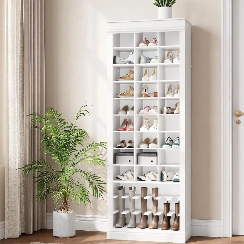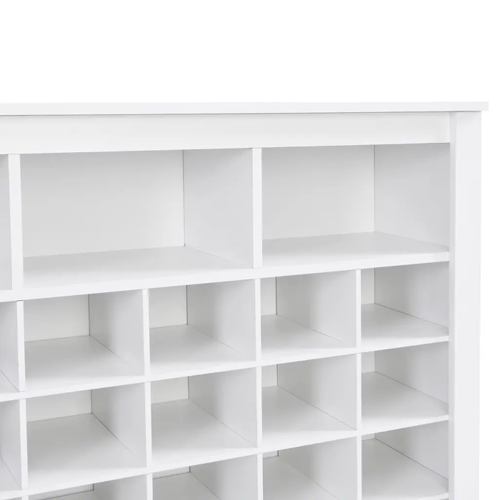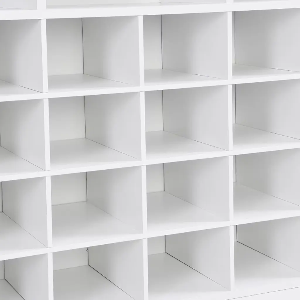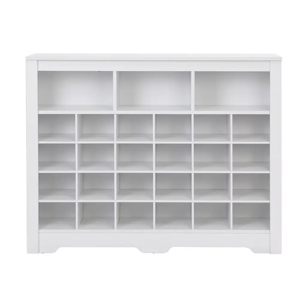 The cabinet is divided into 24 small cubbies, each designed to hold a single pair of shoes, ensuring that your shoes are neatly organized and easily accessible.