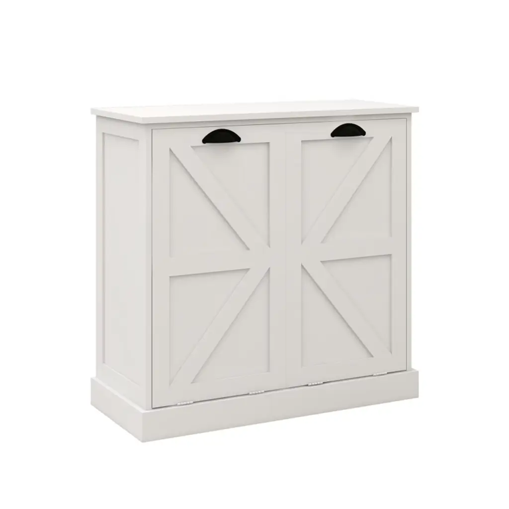 Tiramisubest White Laundry Sorter Cabinet - 2-bin Tilt-out Hamper & Buffet Top, Farmhouse Style Storage For Mudroom, Bathroom Or Laundry Room