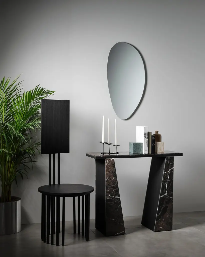Toros Black & Black Oak Eterno Sideboard by Studio MohsDimensions: W 74 x D 30 x H 90 cmMaterials: Marble, Diabase, Black Wood Veneer.The Toros Black marble, which is extracted from Alanya Demirtas, is a highly demanded product in interior designs with its white vein transitions on a black background and occasional light brown tones. It can give varying colors and patterns depending on different cutting techniques. It is frequently used in indoor floor or wall applications and table and coffee table designs.Studio Mohs is a creative design studio based in Istanbul searching for different design experiences in a living environment. The works involve furniture and products combining old material with modern style and inspired by basic shapes that create clean aesthetics. The meaning of Mohs is the hardness and resistance scale of minerals. Related to that, the beginning of a journey starts with the intimacy with marble and stone. The origins of Studio Mohs is coming from a long time experience of marble quarries. Years of working with this material as “Demirtas Mining Company” has evolved into furniture, interior, and product design. The journey from nature to our living spaces has begun with the sculptural and completely marble coffee table designs produced in the marble factory in Alanya.