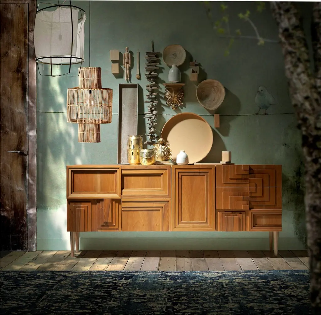 Totem Wood Sideboard, Three Doors And Three Drawers, By Lola Glamour