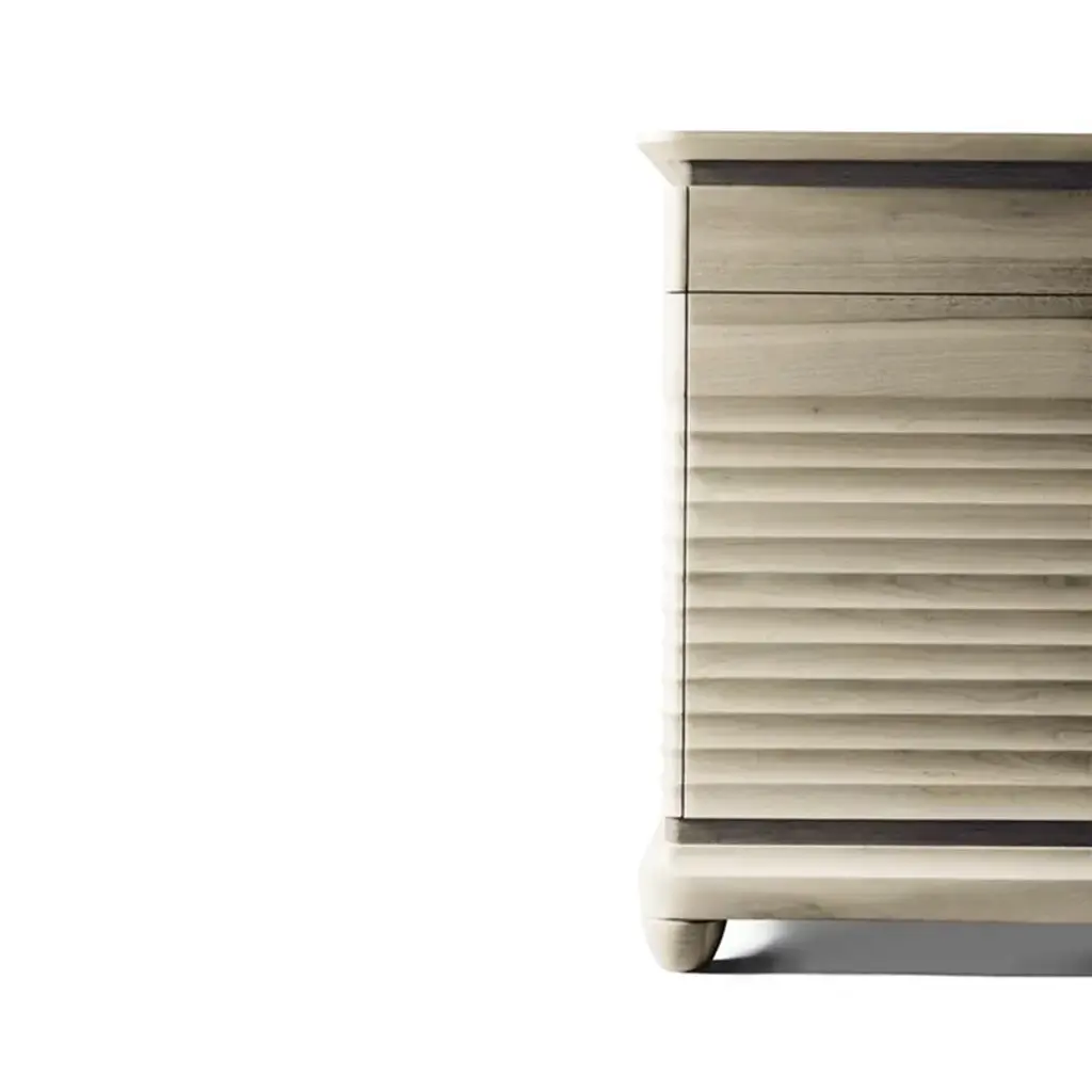 Variations on a theme The undulating surface of the wood creates magical glimmers of light, in a piece whose soft grey tones will add a touch of personality to any room. Frame in solid canaletto walnut. Available in two-door version with two drawers, two internal compartments and wooden shelves. Sideboard with doors in solid walnut.Sideboard n. A-602 • Colour Natural grey walnut• Finishing Oil