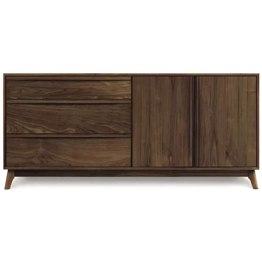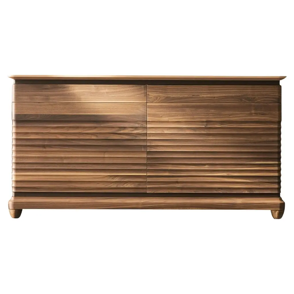 Contemporary design and classic soul. This solid wood sideboard is the result of our artisans’ craftmanship and passion. The delicate wavy front creates a refined contrast between lights and shadows: this way, the cabinet looks different and more suggestive depending on the perspective.