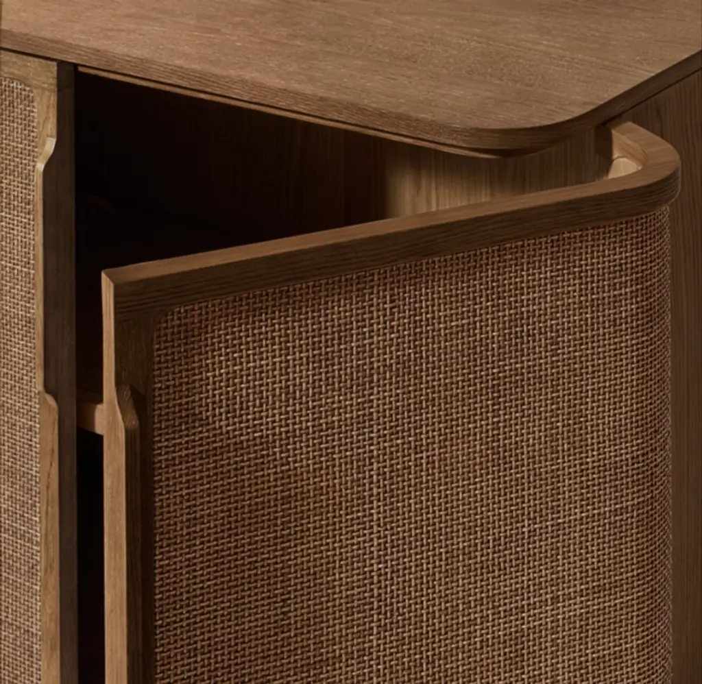 Milanese designer Claudio Bellini marries a classical sensibility with a contemporary aesthetic in Trieste. Celebrating refined forms with radius curves, the collection is handcrafted of European white oak with a multistep finish to highlight the wood's natural beauty. A seamless integration of materials, the oak frame features woven cane panels that lend warmth and textural appeal. SHOP THE ENTIRE COLLECTION