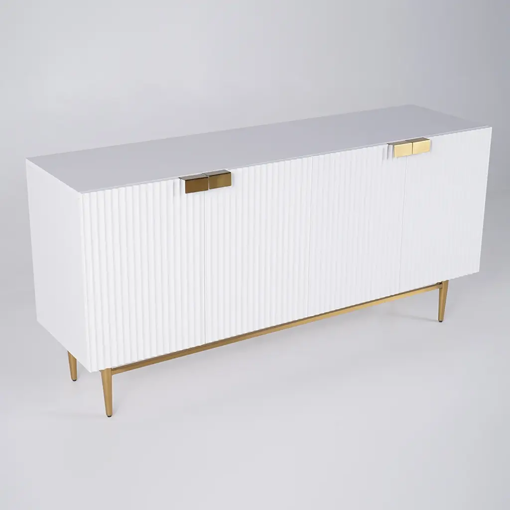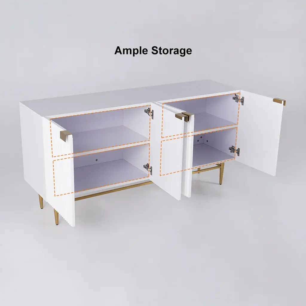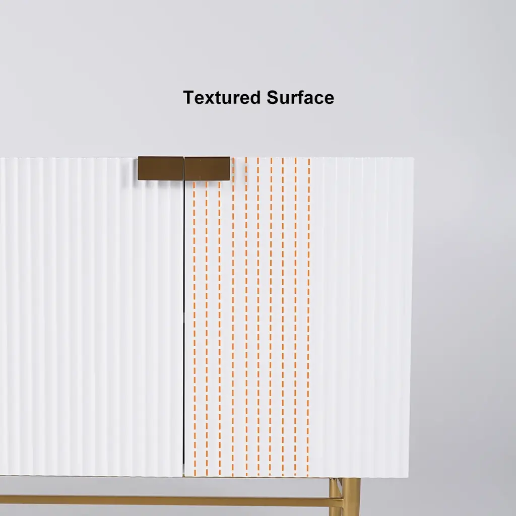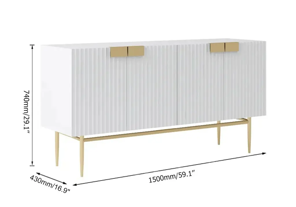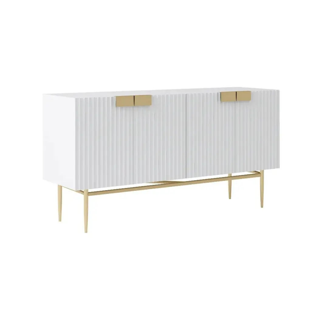Lending a touch of minimalist, modern appeal to your space, this cabinet showcases a clean-lined silhouette with four tufting style doors. Come with the white and gold hue, it creates an inviting look that complements nearly any layout style. The top is easy to clean and perfect to hold decorative items, while four doors open to reveal generous interior space for a variety of storage options. Try it in the kitchen to store serveware, stemware, and china for special occasions. Or place it in your bedroom to store clothes, towels and more. As versatile as handsome, this piece looks great and adds function to almost any space.