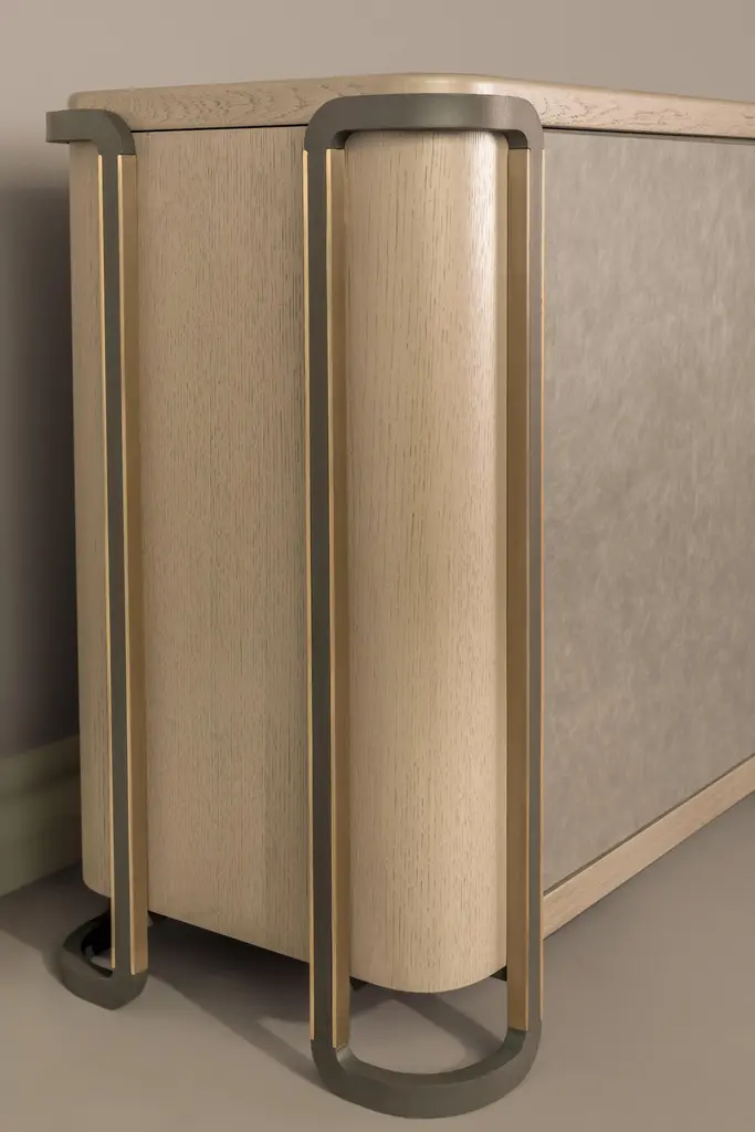 Unique Yaprak sideboard by Ekin VaronDimensions: W 200 x D 50 x 90 HMaterials: Wood Veneer, Glass.Custom materials, sizing and finishes available as item is made to order.Ekin Varon is the founder and creative director of Ekin Varon Design Studio. Born and raised in Istanbul, Ekin has worked in various architecture firms and furniture design studios after completing her academic education in the furniture department of Rhodes Island School of Design. Having a sculptor mother and a father who is in the textile business, Ekin grew up having appreciation of various artistic disciplines and a desire of creative expression. In 2020, former co-founder of 15 West Studio, founded Ekin Varon Design Studio. Interdisciplinary art is at the center of Ekin’s design approach. Using various craftsmanship techniquesat at her designs, she creates multi layered, unique furniture, objects and environments. Originality is the main driver of her designs and she achieves that by creating timeless designs that harmonize modern aesthetics with traditional Turkish craftmanship.